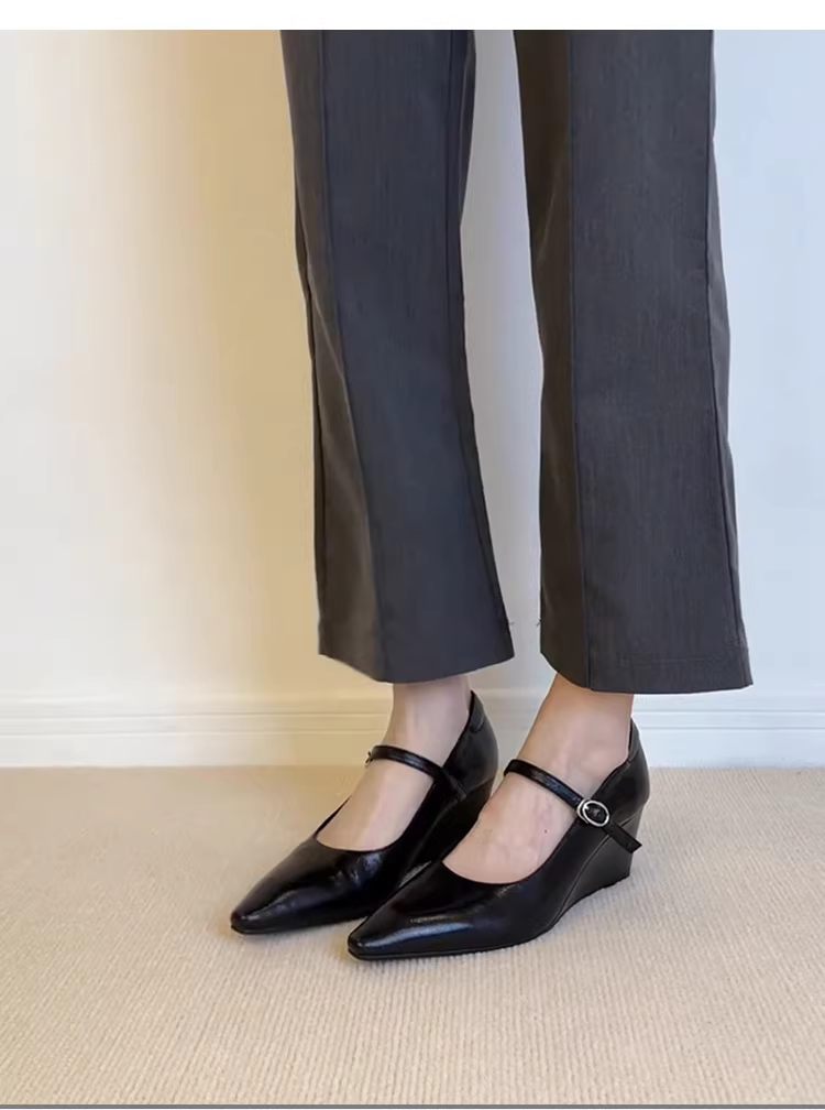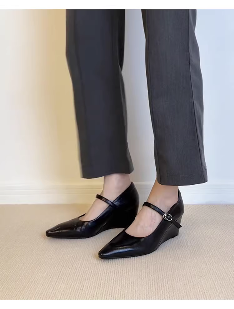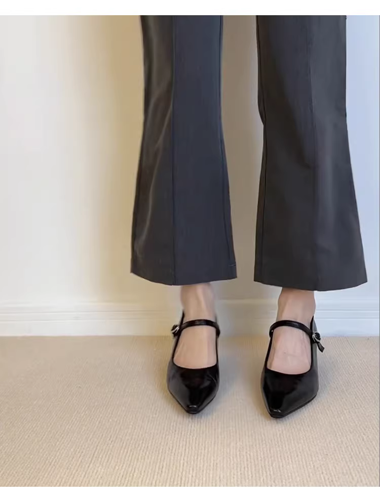 - Phiên bản da cừu ~ Giày da thật mũi nhọn gót nhọn kiểu cổ điển dành cho nữ, giày cao gót màu đen có quai đơn, giày Mary Jane đơn giản.