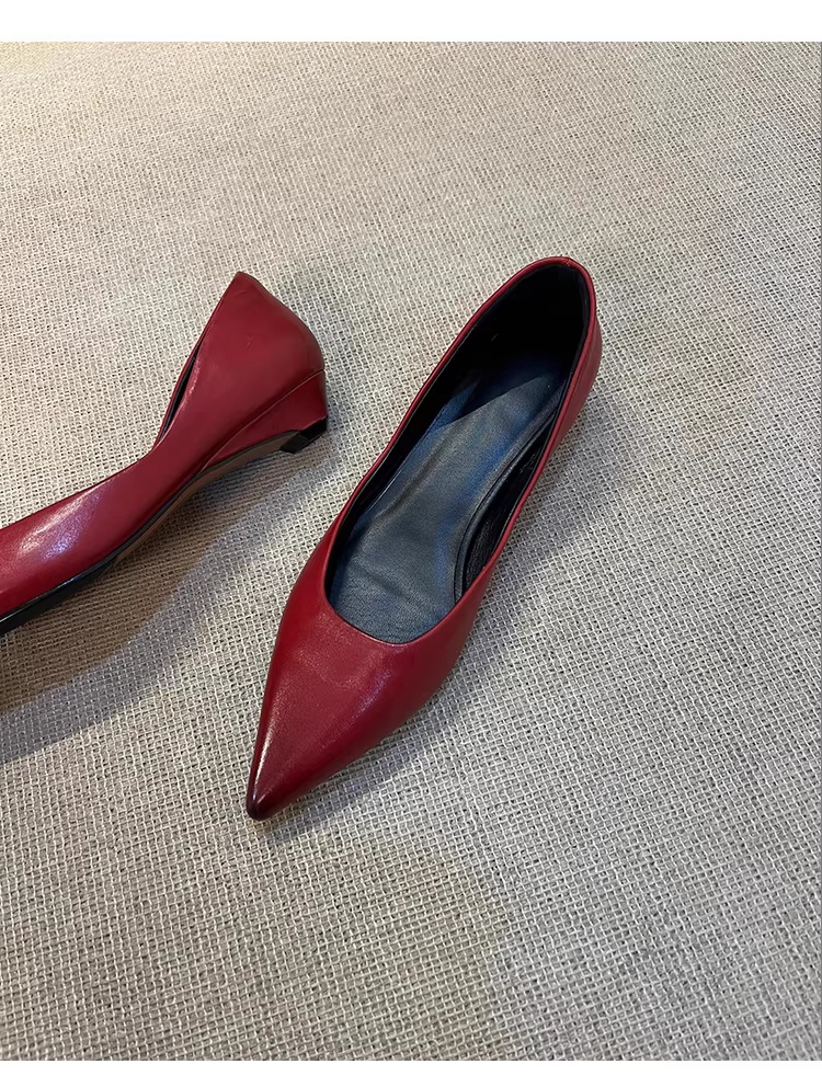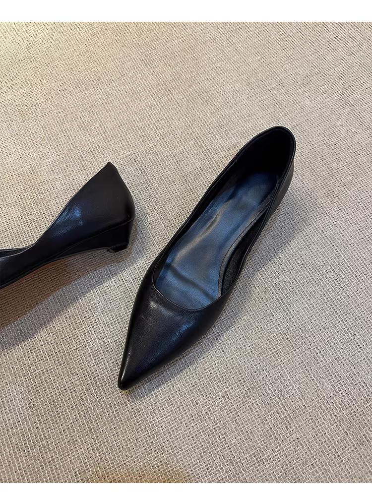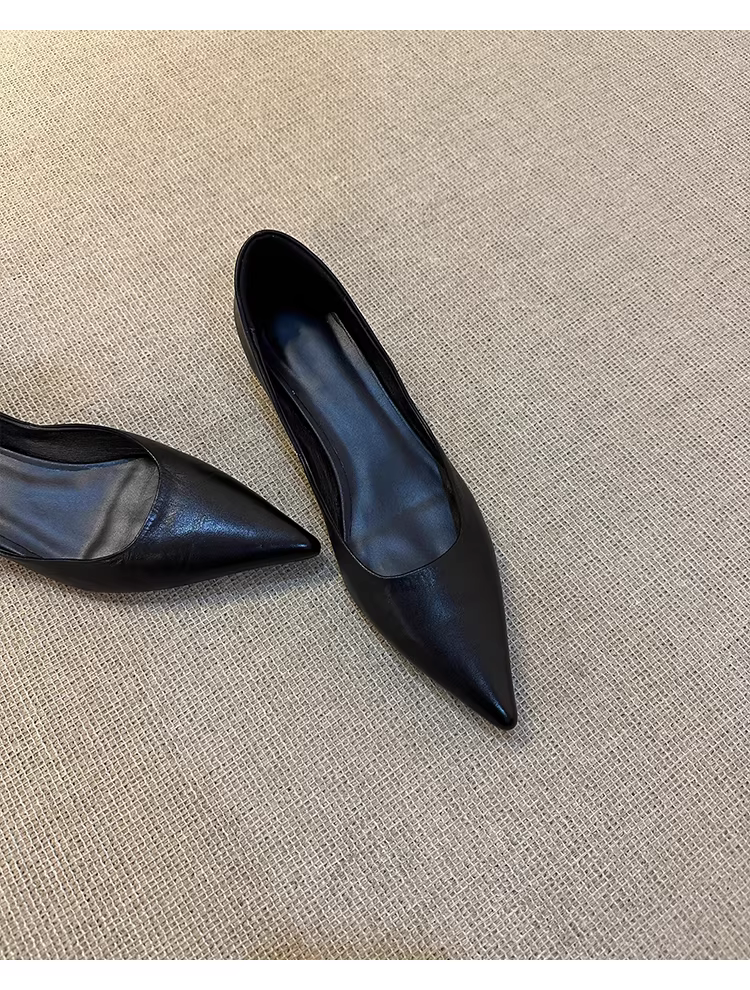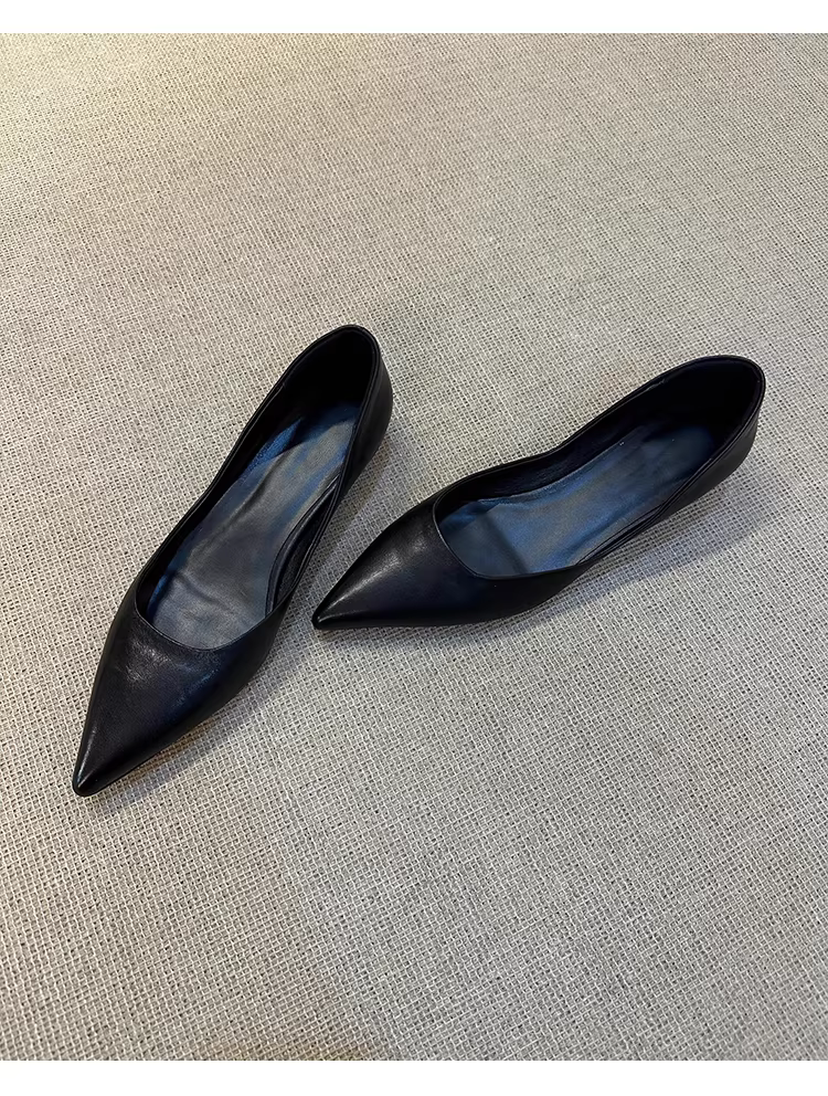 - Phiên bản da cừu ~ Giày đế bằng mũi nhọn thanh lịch dành cho nữ, giày công sở da thật đơn giản và đa năng, thích hợp đi làm