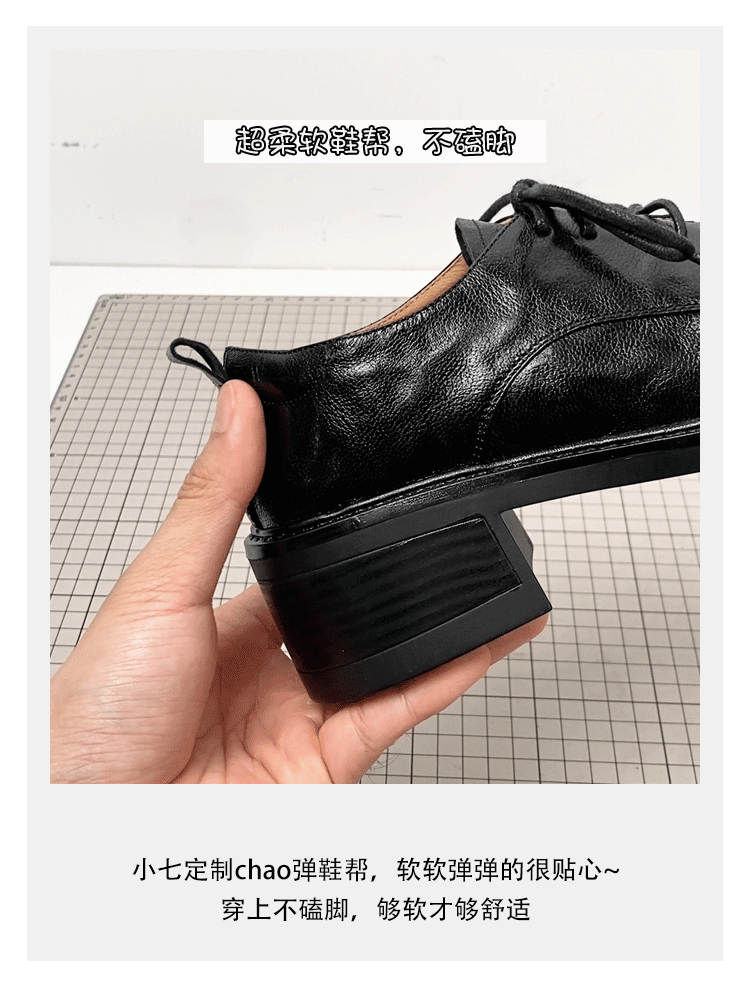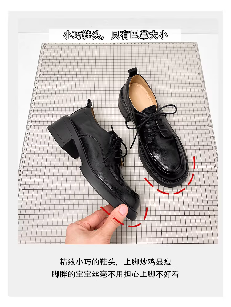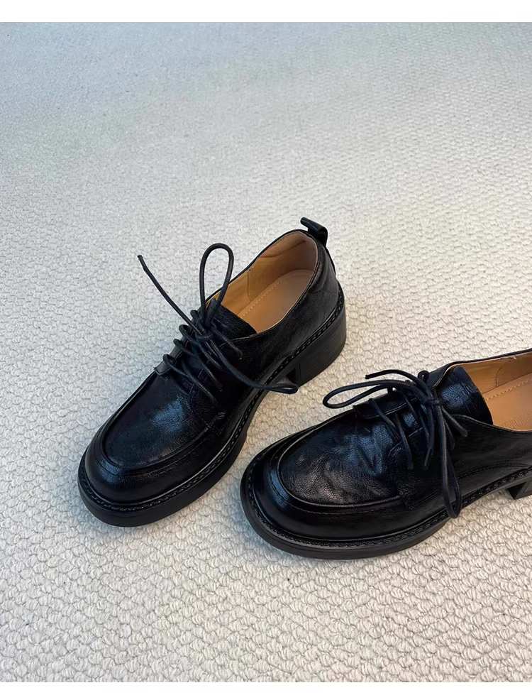 - Phiên bản da cừu ~ Giày đế dày buộc dây kiểu đại học dành cho nữ, giày da thật đa năng đế dày, phong cách Anh quốc, giày da nhỏ kiểu giản dị