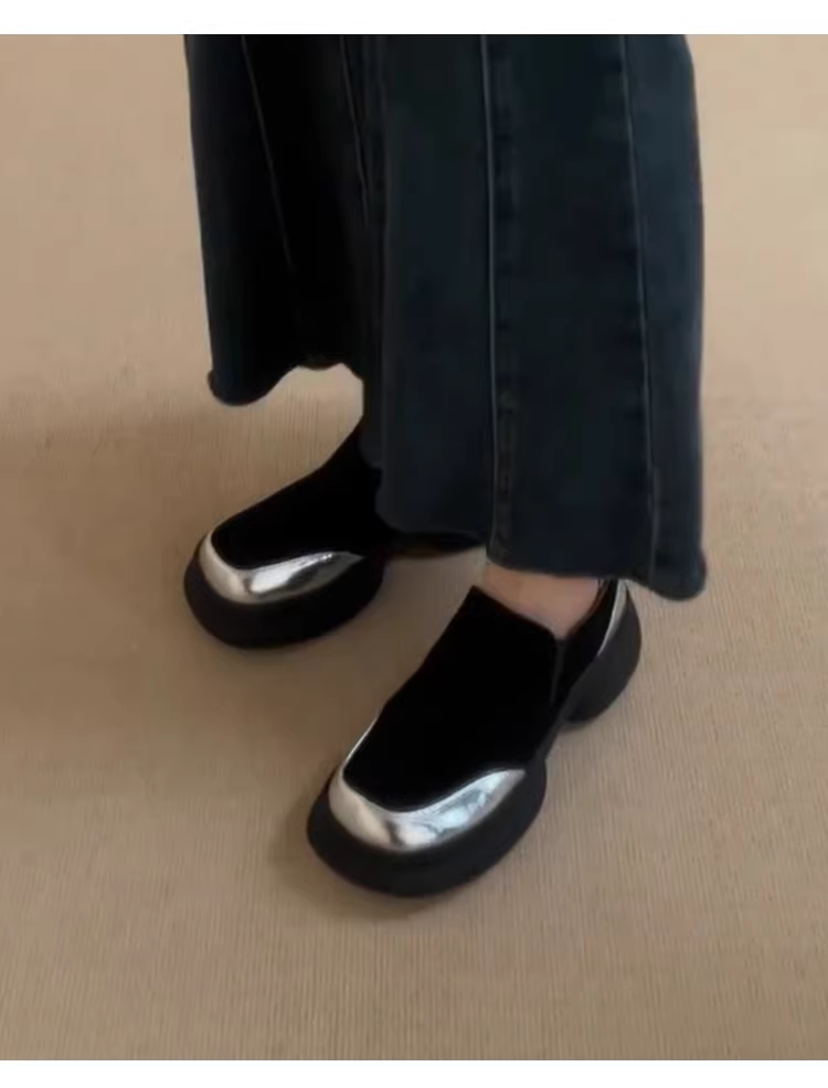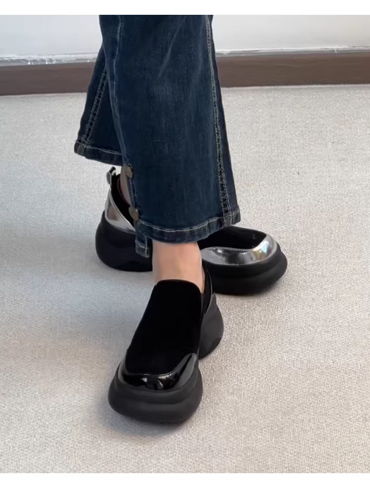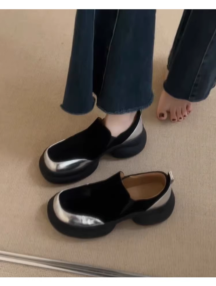 - Phiên bản da cừu ~ giày đế dày đế dày kiểu cổ điển dành cho nữ, giày da lộn mũi tròn đơn giản, giày da nhỏ đơn giản