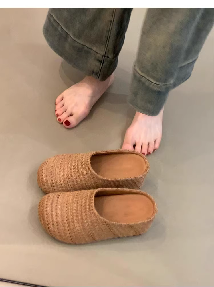 Phiên bản da cừu ~ Giày đế dày dệt kiểu cổ điển dành cho nữ, giày mules kiểu bohemian mới.