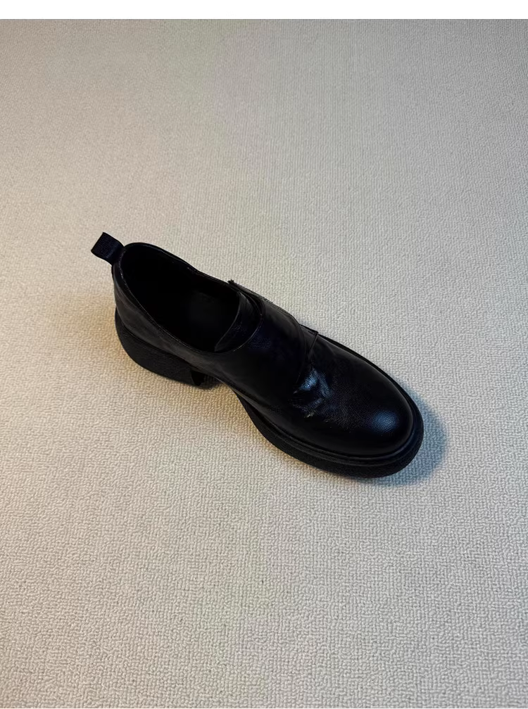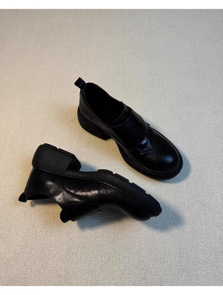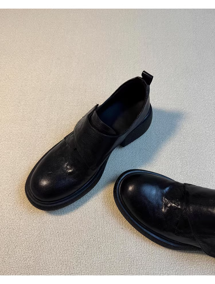 - Phiên bản da cừu ~ Giày đế dày kiểu retro có khóa dán Giày đế bằng da thật mũi tròn đa năng kiểu Anh Giày da nhỏ dành cho nữ