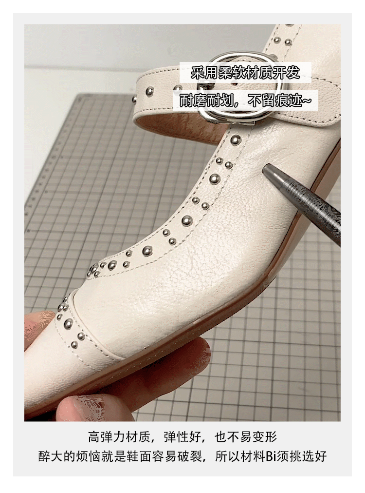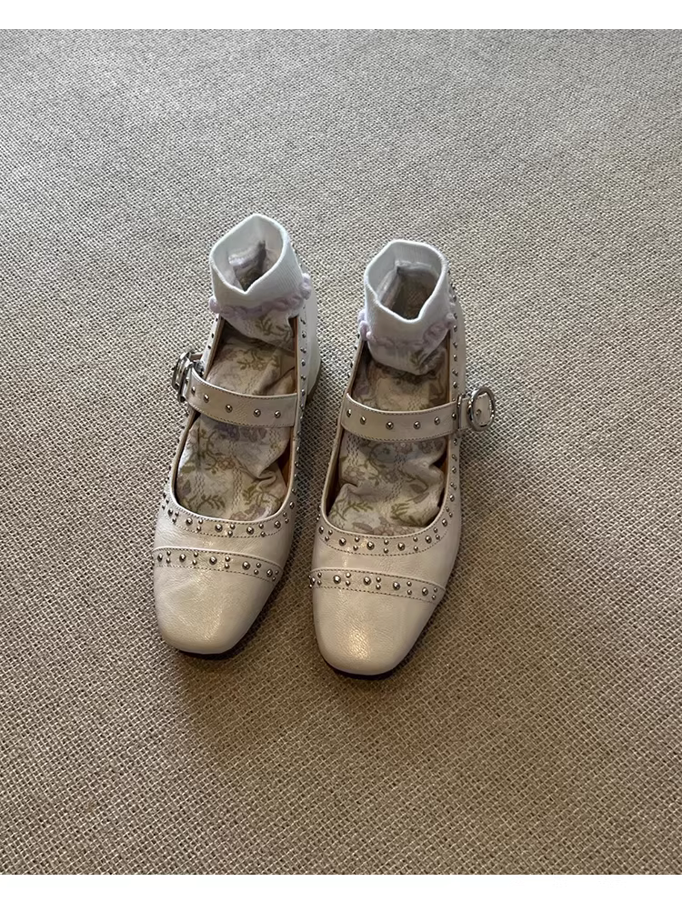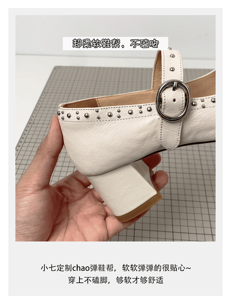 - Phiên bản da cừu ~ Giày đế thấp có dây đeo đơn đa năng kiểu Pháp dành cho nữ, giày Mary Jane cổ điển có gót dày bằng da thật