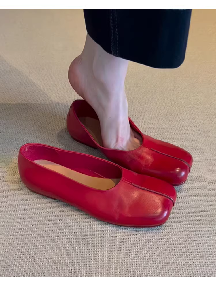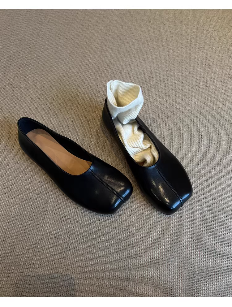 - Phiên bản da cừu ~ Giày đơn giản kiểu retro dành cho nữ với thiết kế mũi vuông, giày ba lê đế bằng đa năng bằng da thật