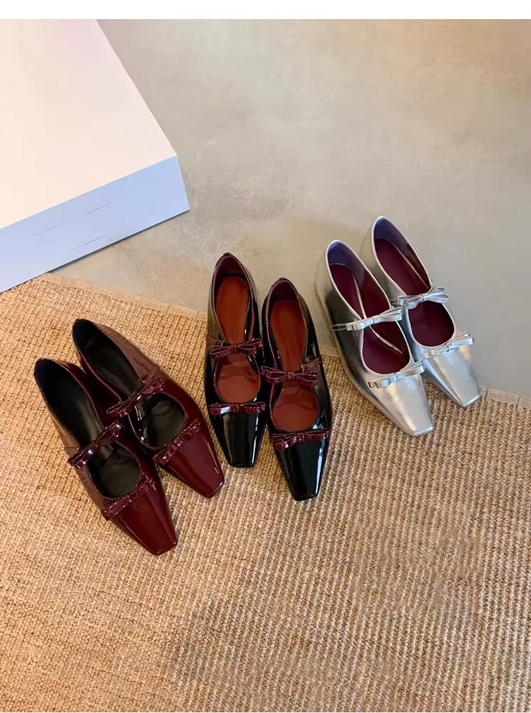 Phiên bản da cừu ~ Giày đơn kiểu Pháp tinh tế có nơ rỗng dành cho nữ, giày Mary Jane mũi vuông nhỏ đa năng, miệng nông, tăng chiều cao