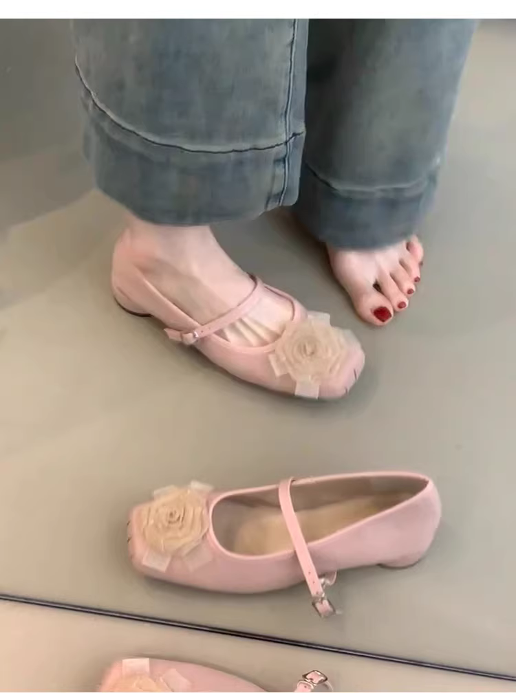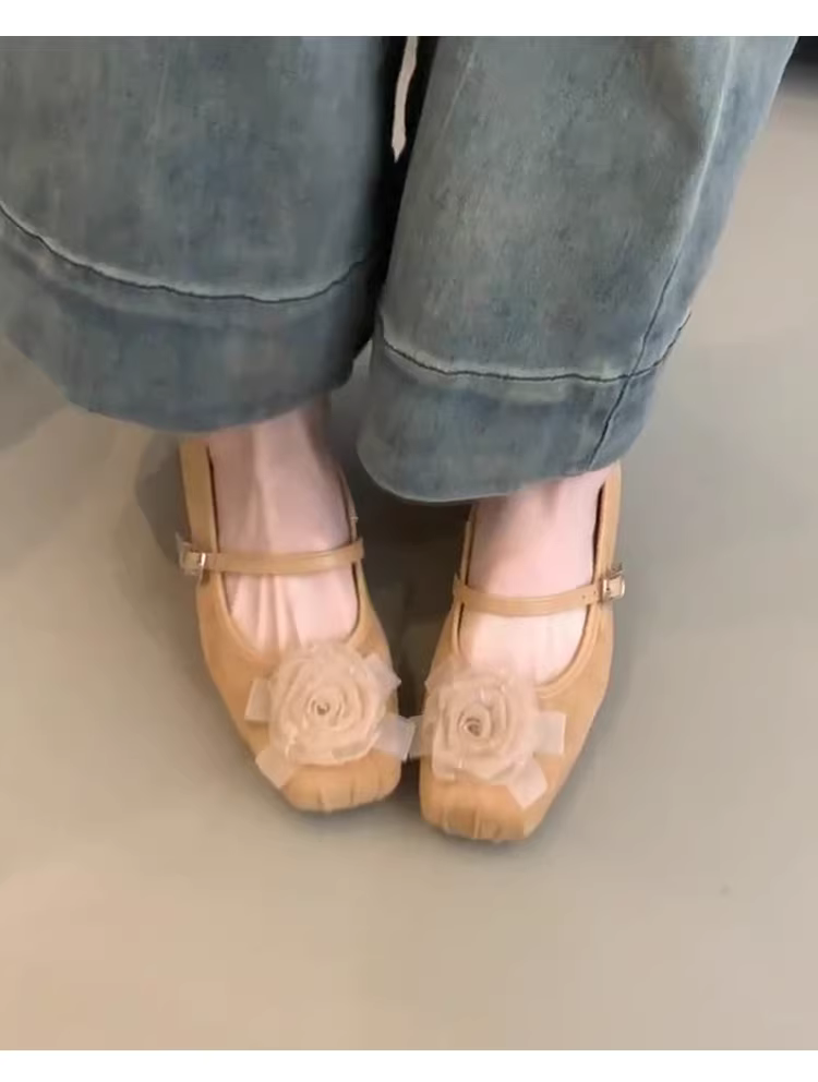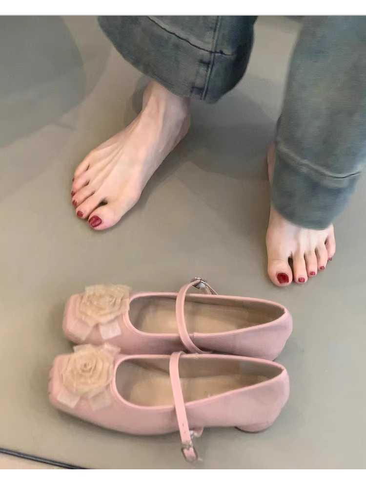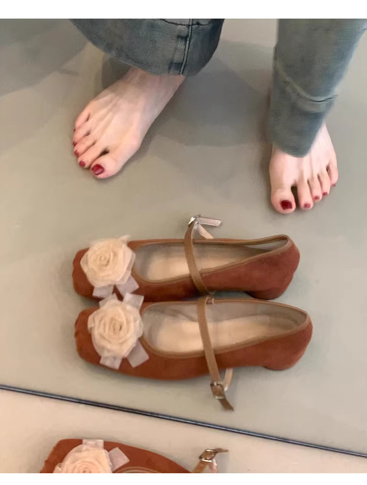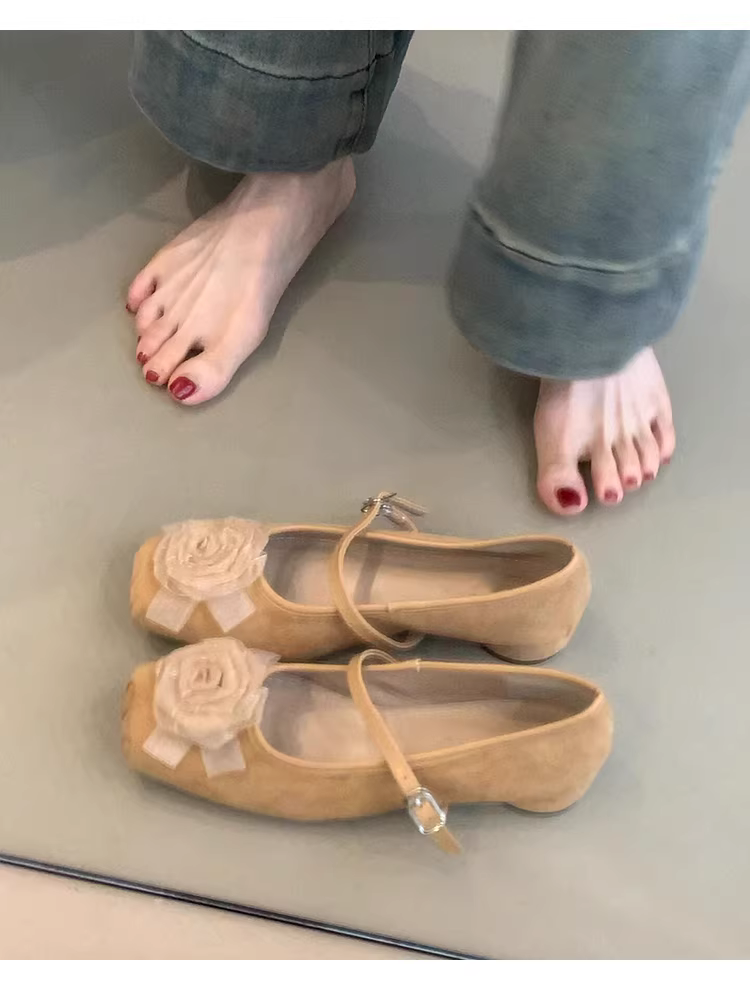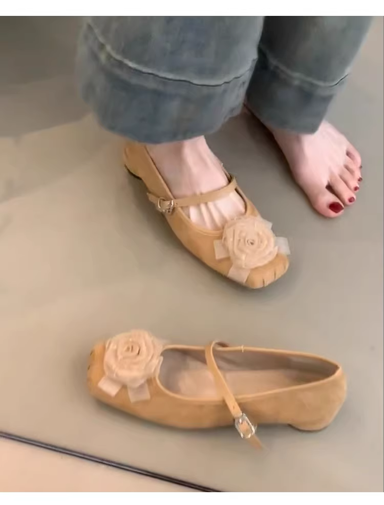 - Phiên bản da cừu ~ Giày đơn mũi vuông bằng da mờ kiểu mới dành cho nữ, giày Mary Jane có gót thấp xếp ly hoa