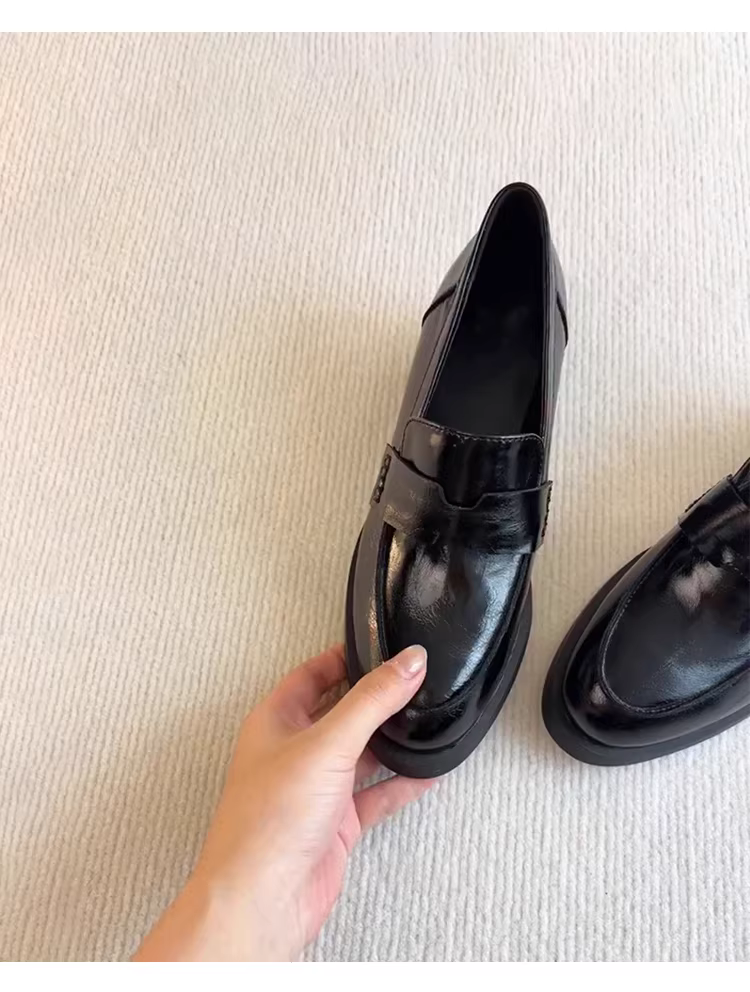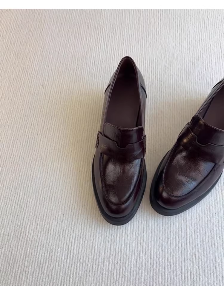 - Phiên bản da cừu ~ giày lười da thật kiểu cổ điển đơn giản dành cho nữ, giày da nhỏ mũi tròn gót dày đa năng