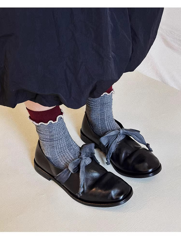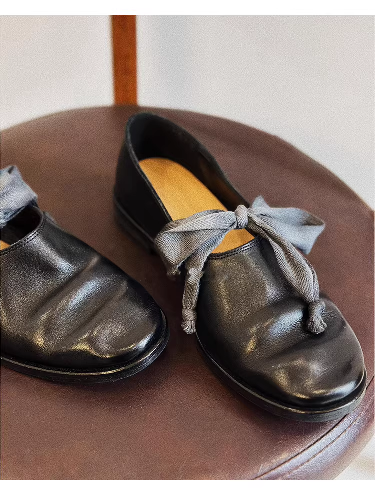 Phiên bản da cừu ~ Giày lười da thật kiểu dáng nghệ thuật, thiết kế khoét sâu dành cho nữ, có nơ, kiểu lười, gót thấp, đa năng, phong cách retro
