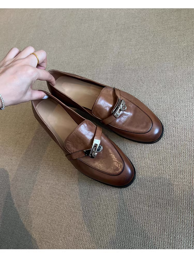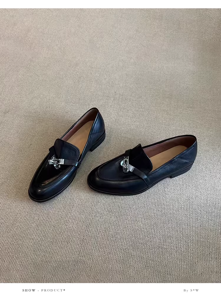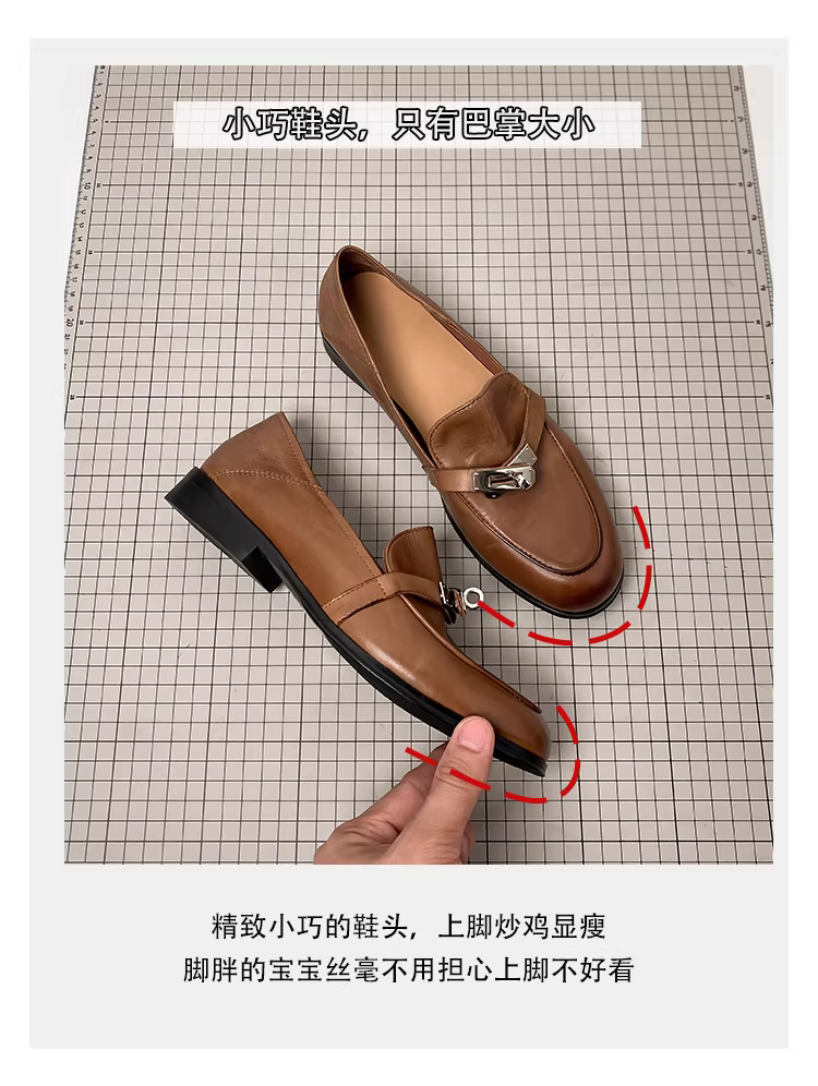 - Phiên bản da cừu ~ Giày lười da thật kiểu retro dành cho nữ, giày đế bằng, giày lười, giày da nhỏ kiểu Anh
