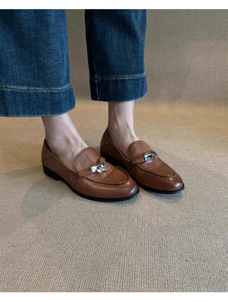 Phiên bản da cừu ~ Giày lười da thật kiểu retro dành cho nữ, giày đế bằng, giày lười, giày da nhỏ kiểu Anh