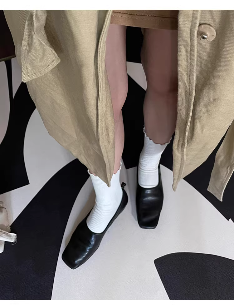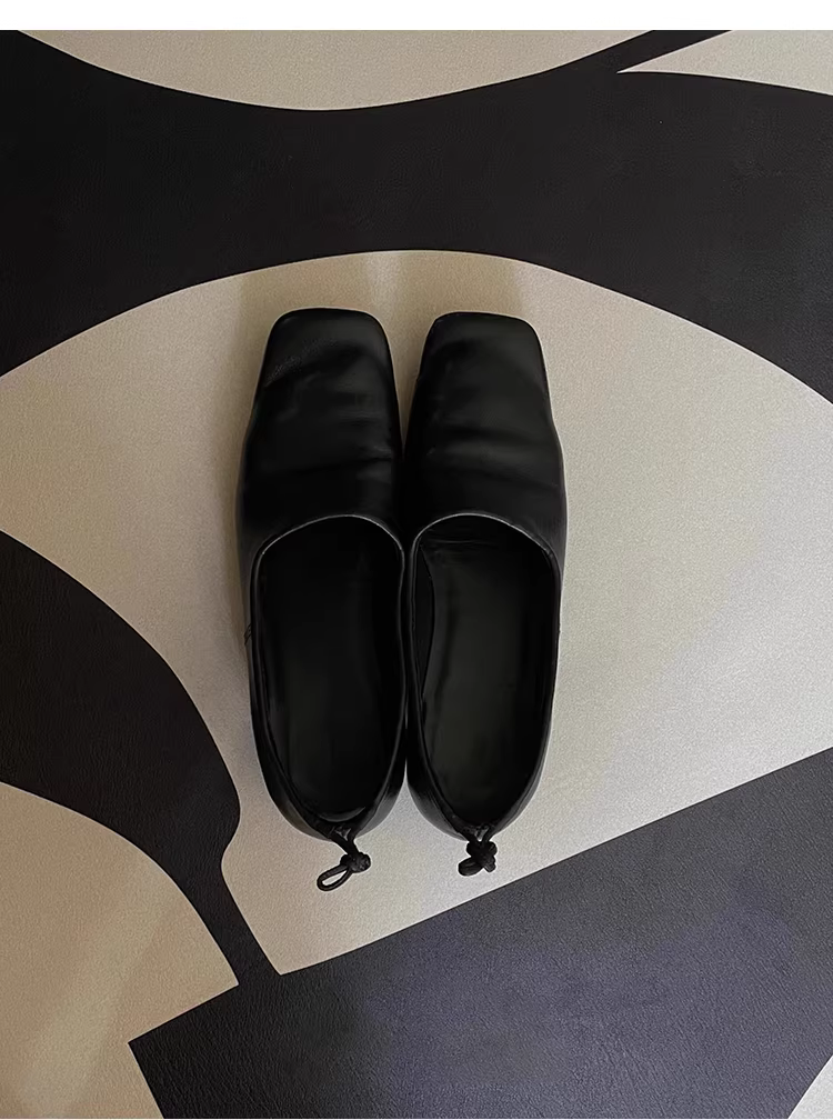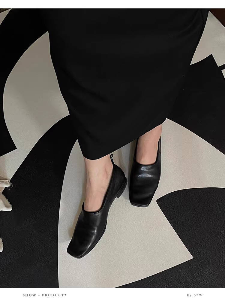- Phiên bản da cừu ~ giày lười da thật kiểu retro dành cho nữ phong cách Anh quốc giày da nhỏ mũi vuông giày đế bằng