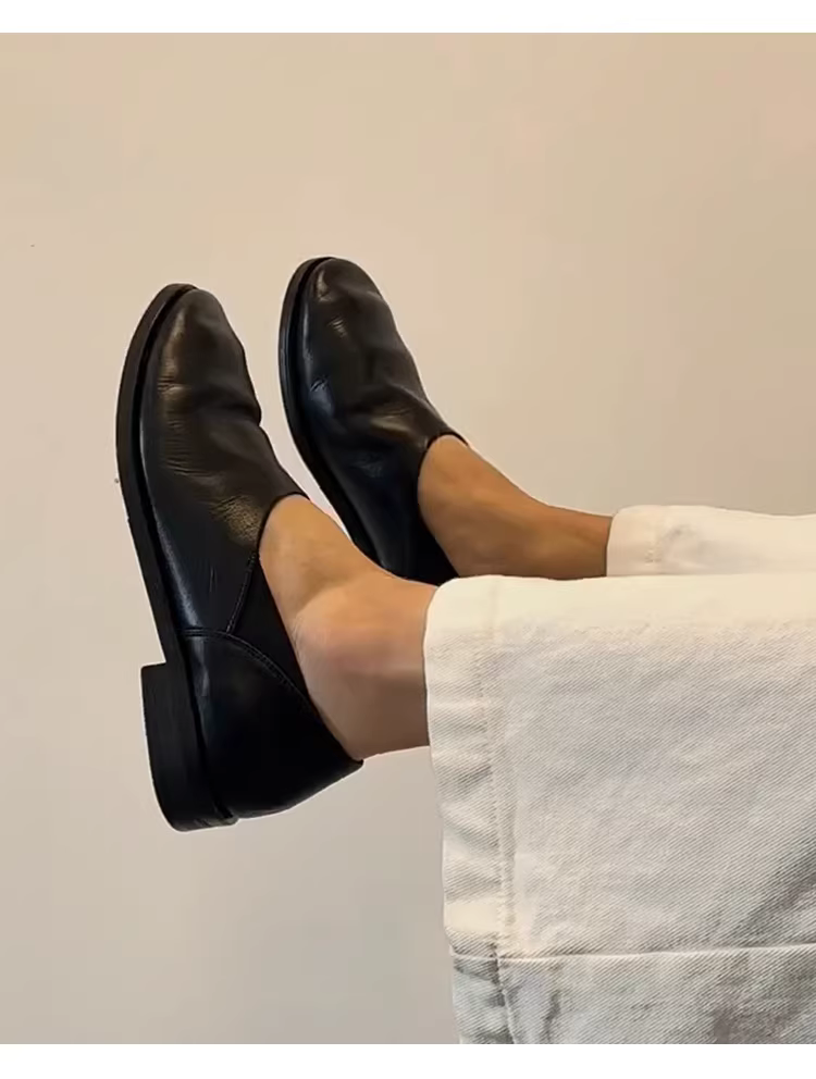 Phiên bản da cừu ~ Giày lười da thật tối giản kiểu retro dành cho nữ, phong cách nghệ thuật đa năng, giày da đế thấp độc đáo, hợp thời trang.