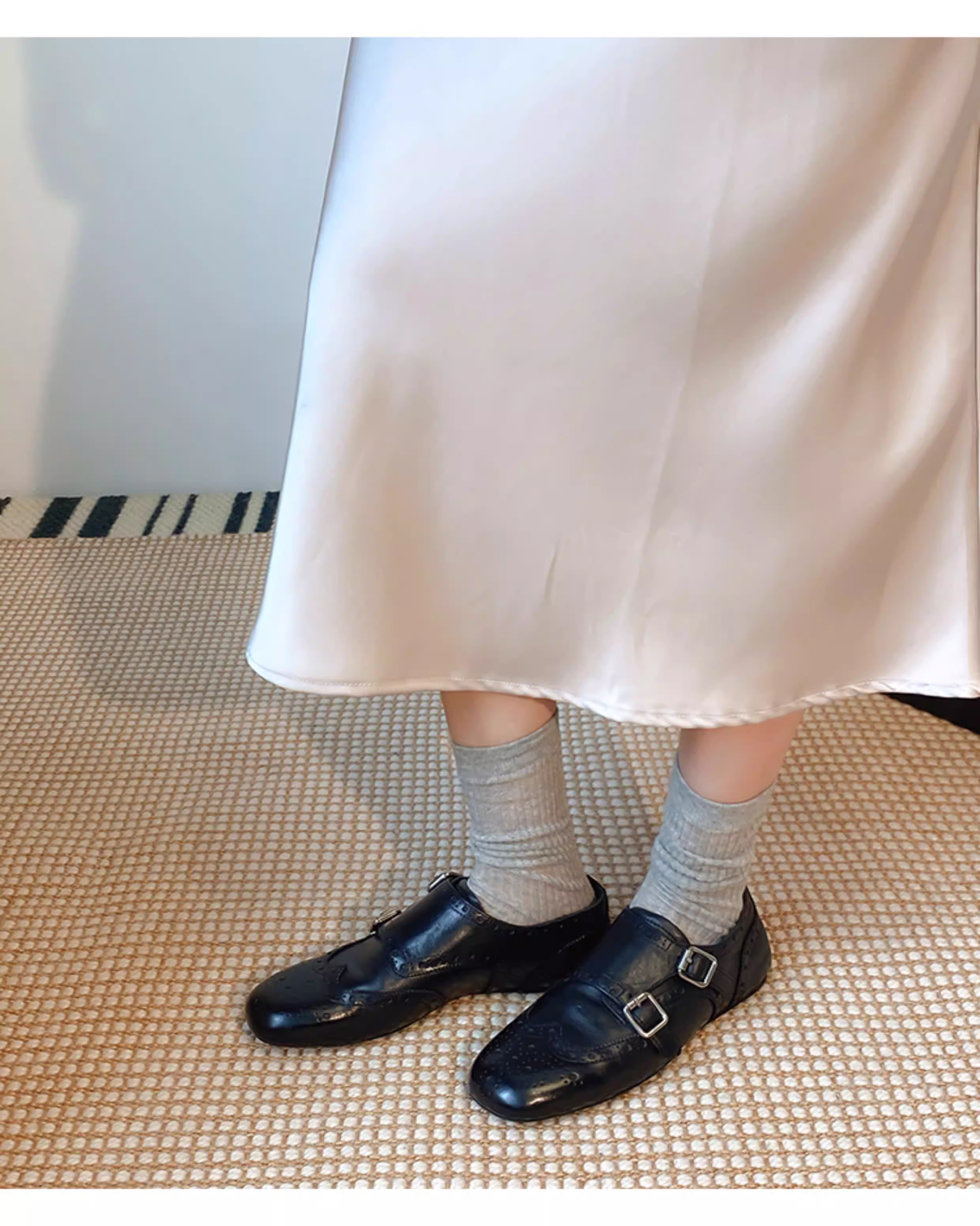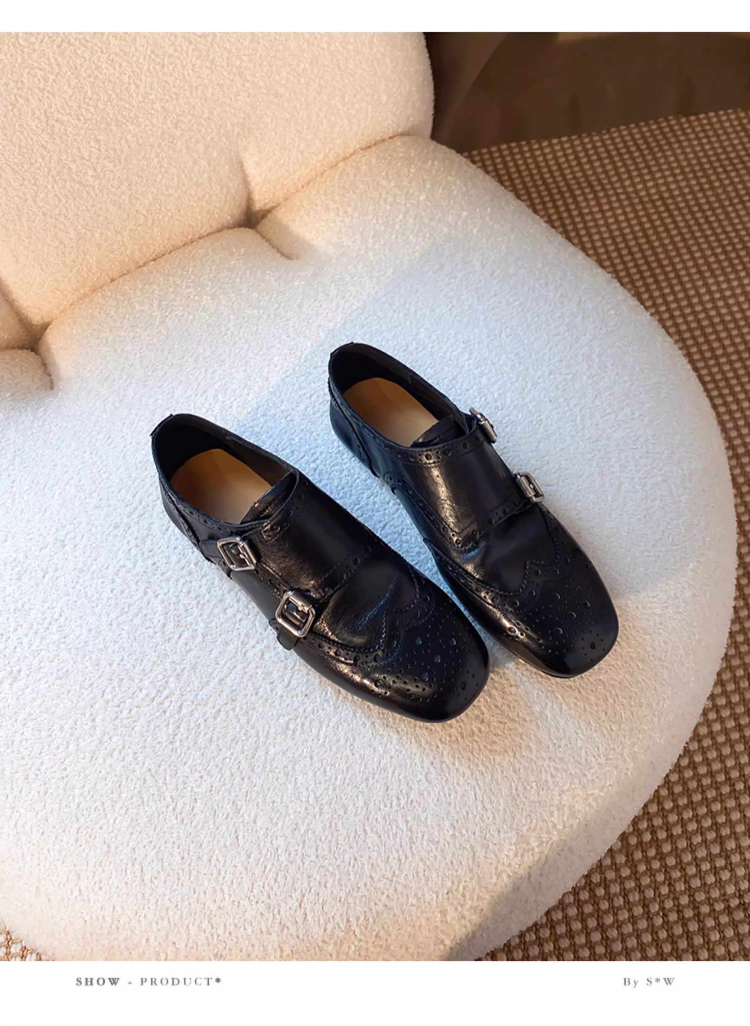 - Phiên bản da cừu ~ Giày lười đế bằng dành cho nữ, da thật, kiểu brogue chạm khắc cổ điển có khóa thắt lưng, giày da nhỏ đa năng.