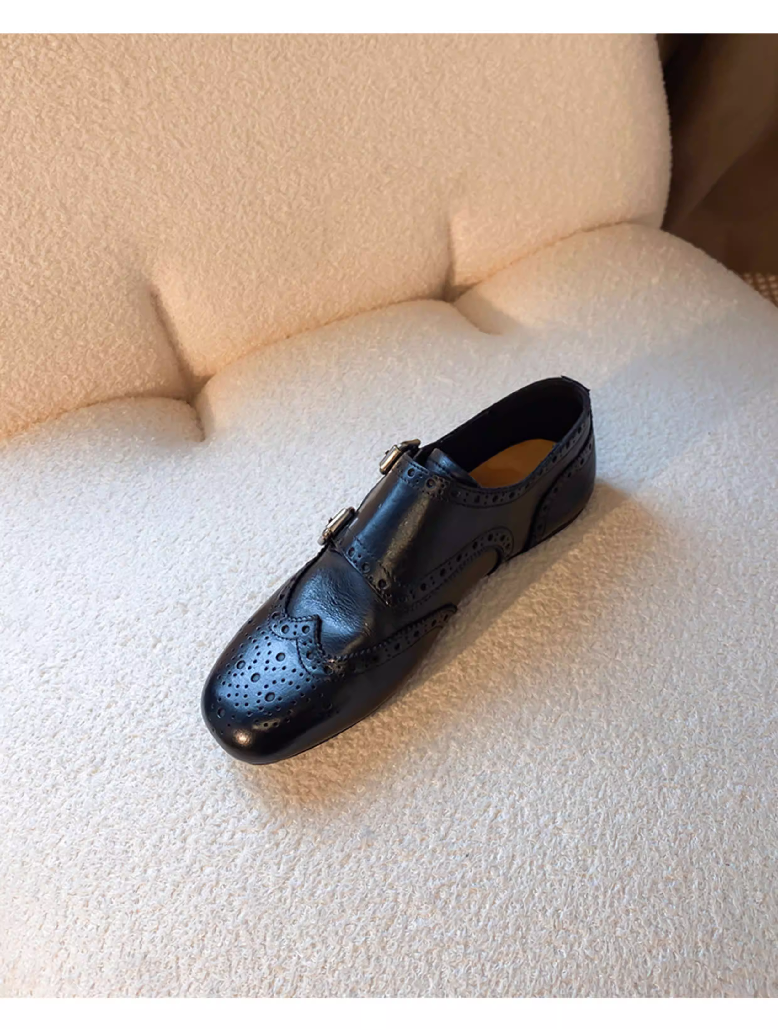 Phiên bản da cừu ~ Giày lười đế bằng dành cho nữ, da thật, kiểu brogue chạm khắc cổ điển có khóa thắt lưng, giày da nhỏ đa năng.