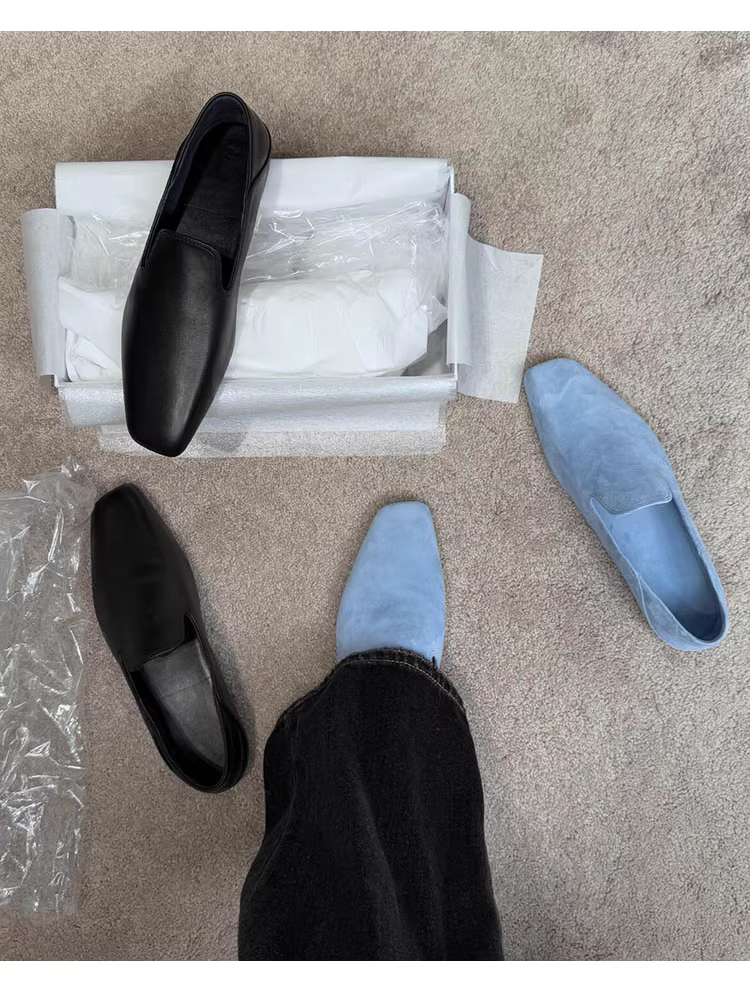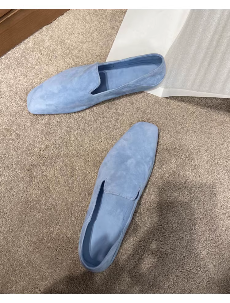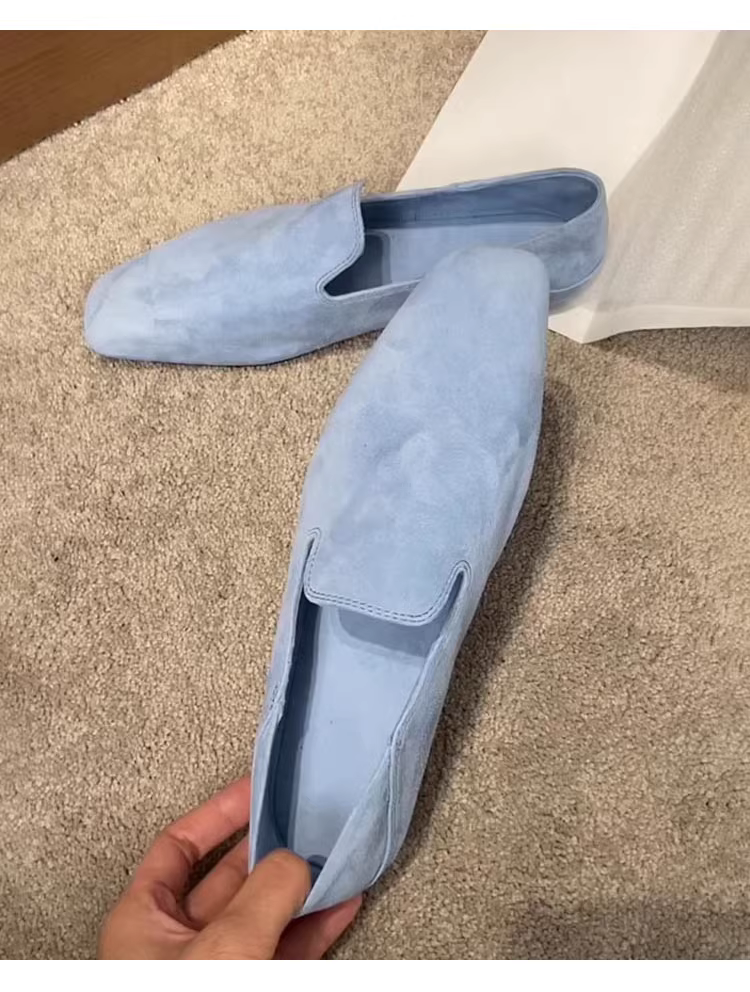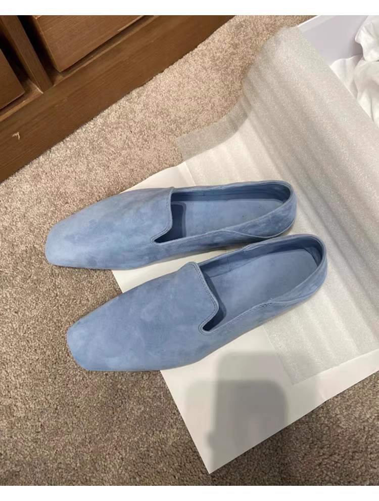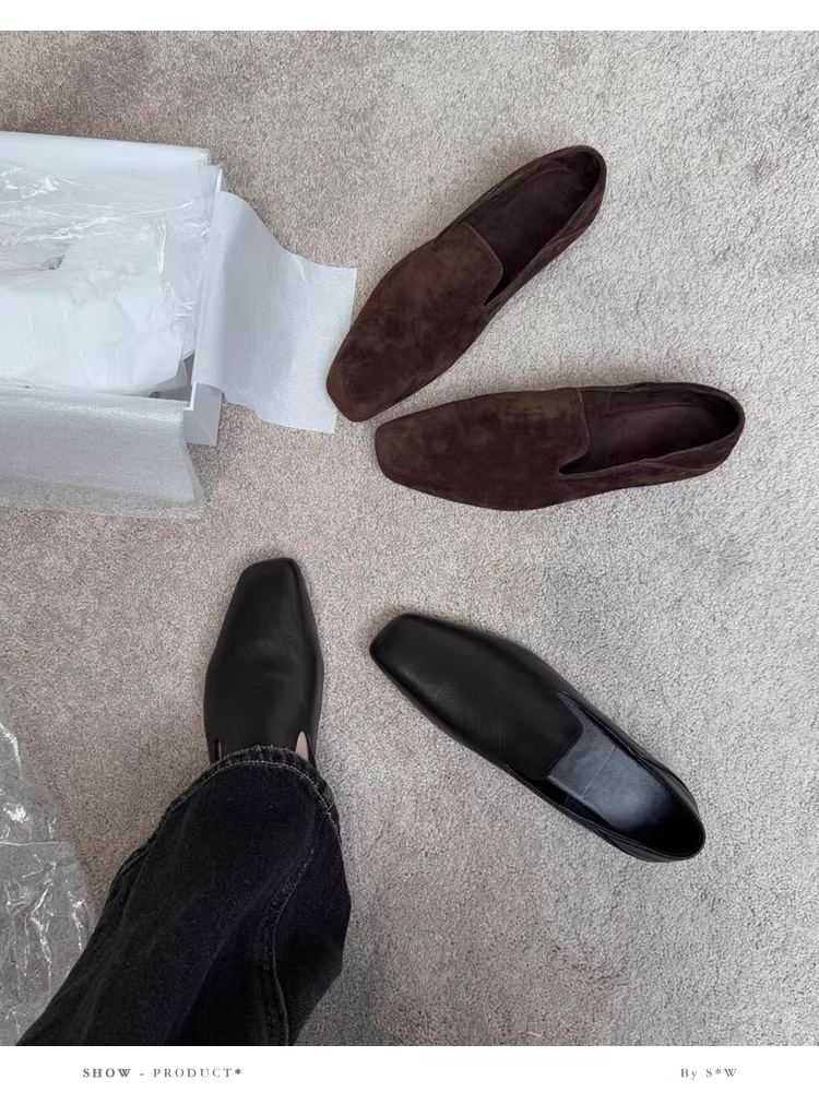 - Phiên bản da cừu ~ Giày lười đế bằng phong cách Anh cho nữ, giày da lộn kiểu slip-on, giày da nhỏ mũi vuông cổ điển