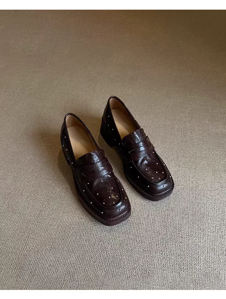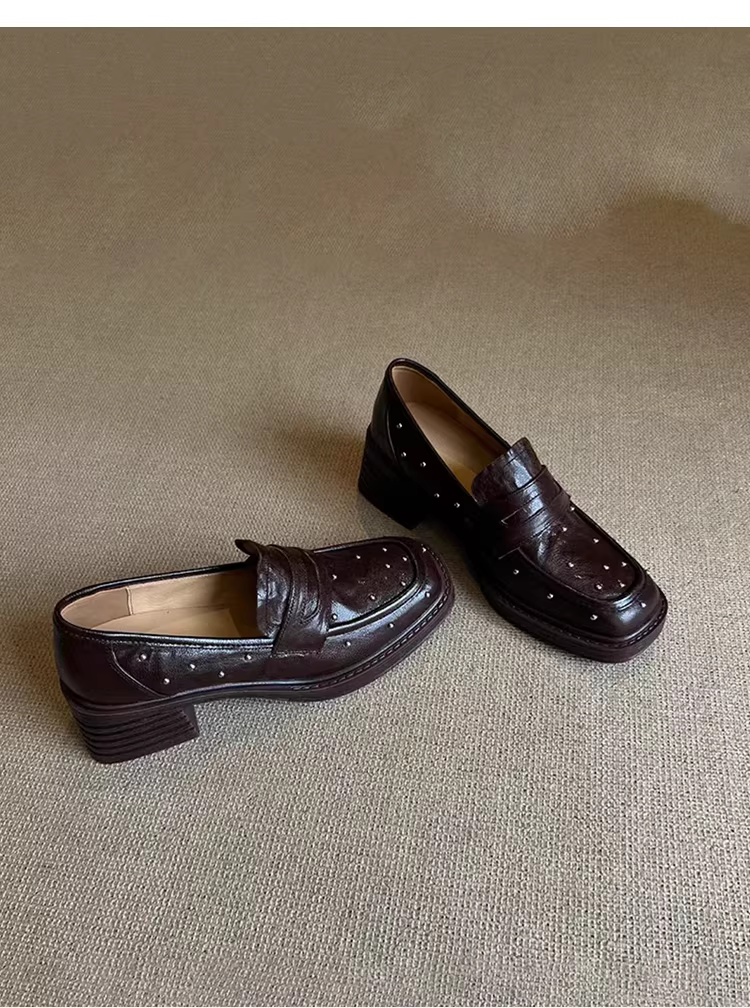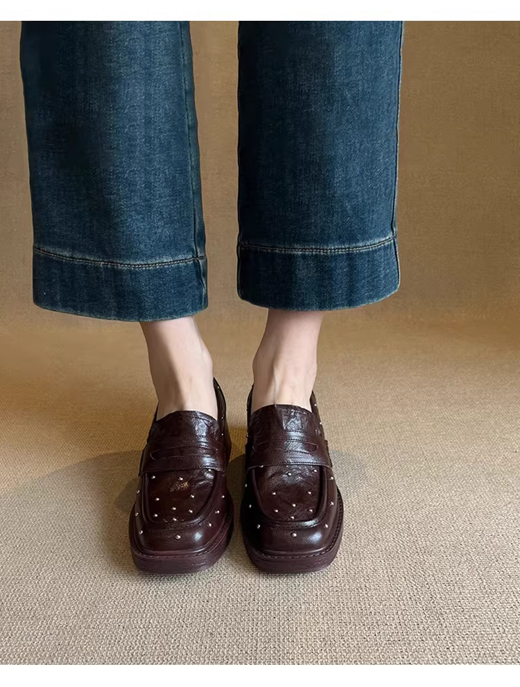 - Phiên bản da cừu ~ giày lười đế dày đa năng có đế dày, mũi vuông, giày da thật kiểu slip-on dành cho nữ