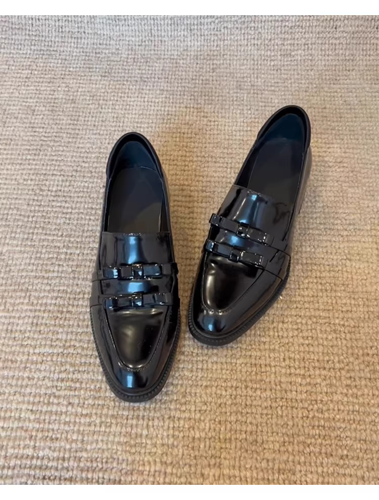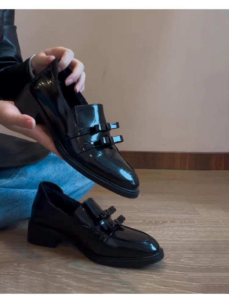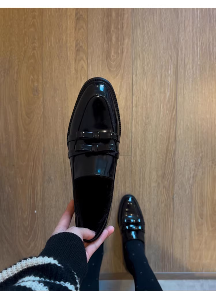 - Phiên bản da cừu ~ Giày lười đế thấp dành cho nữ, phong cách Anh, giày da nhỏ đa năng và thanh lịch, giày đơn có nơ bằng da thật