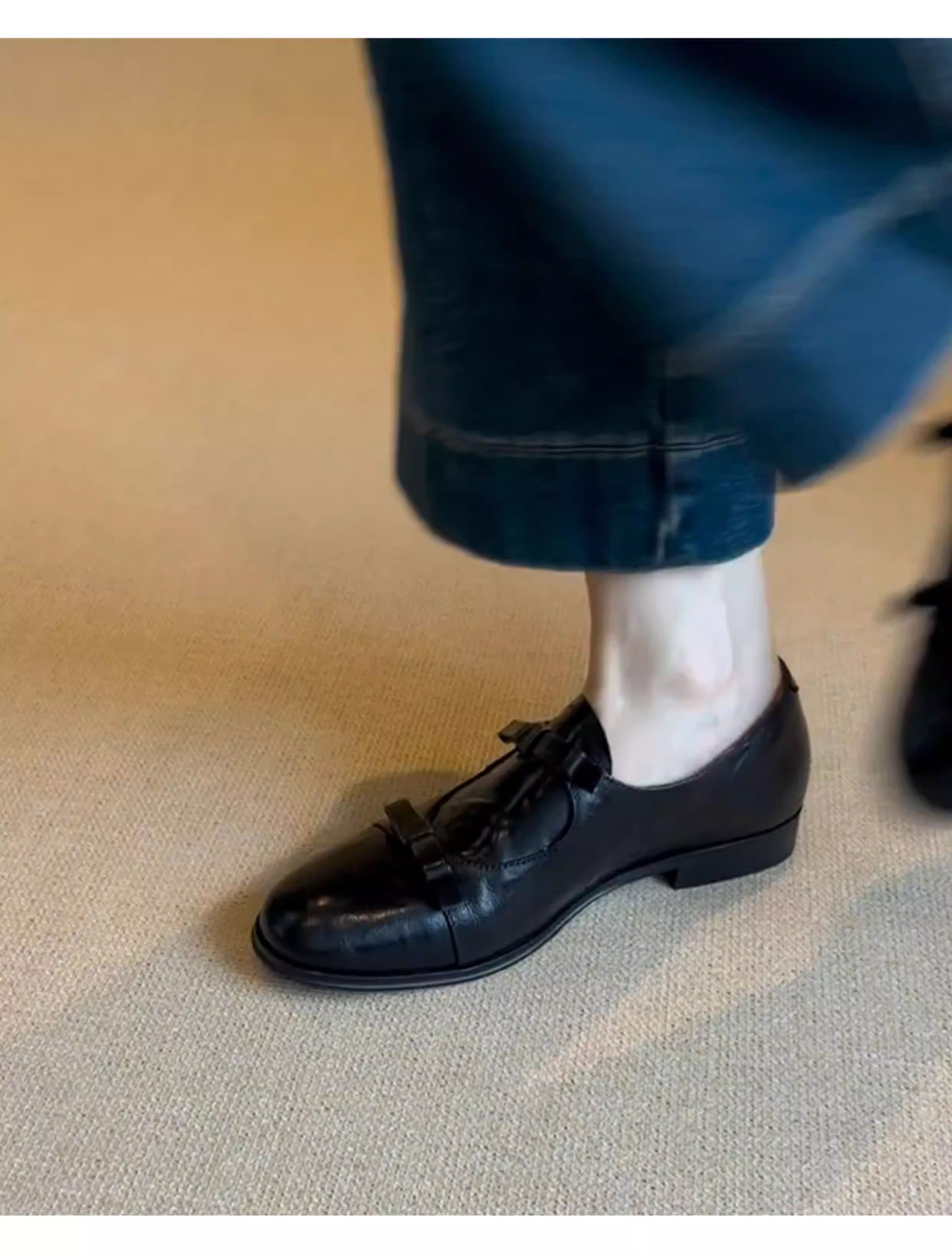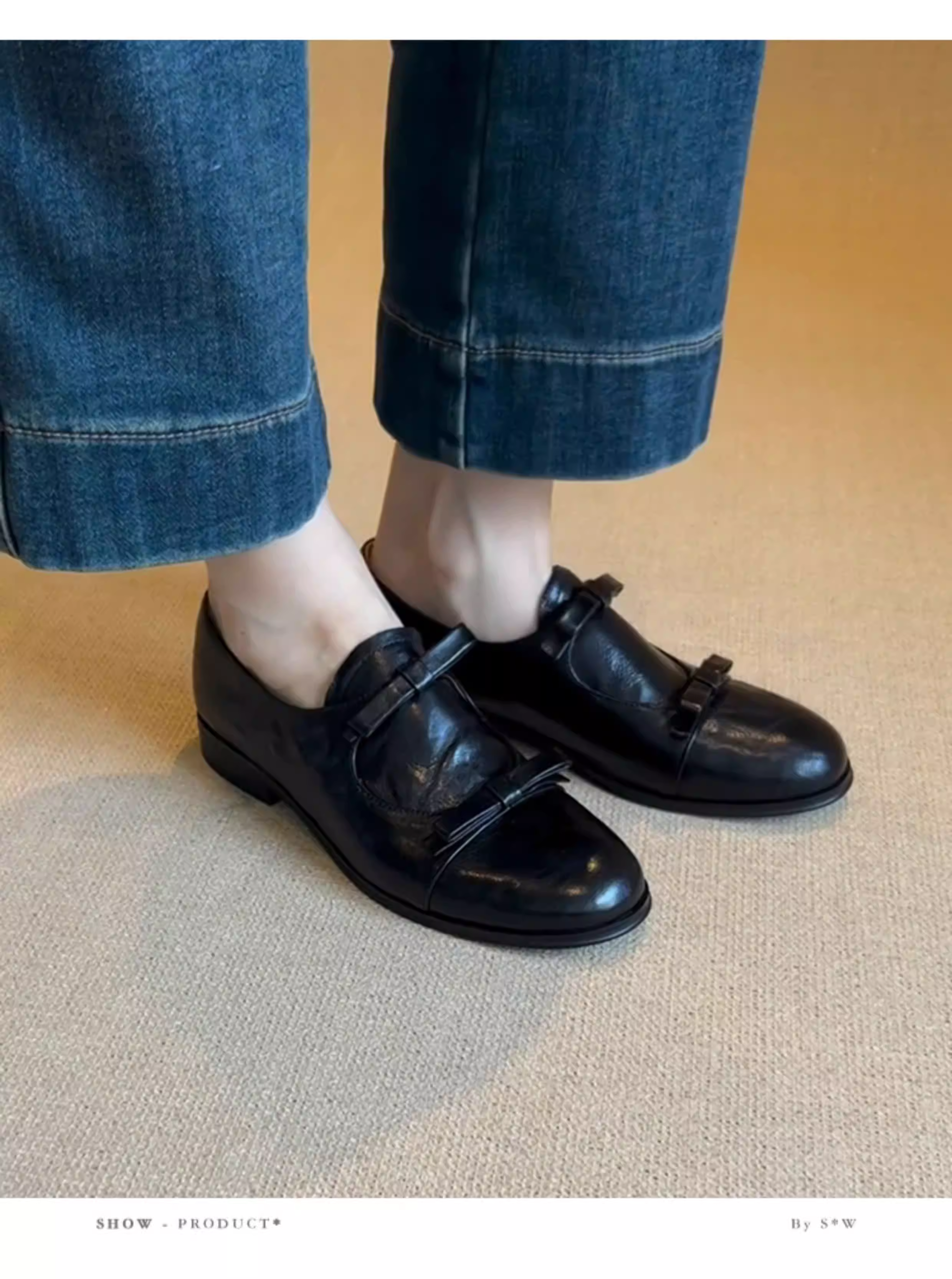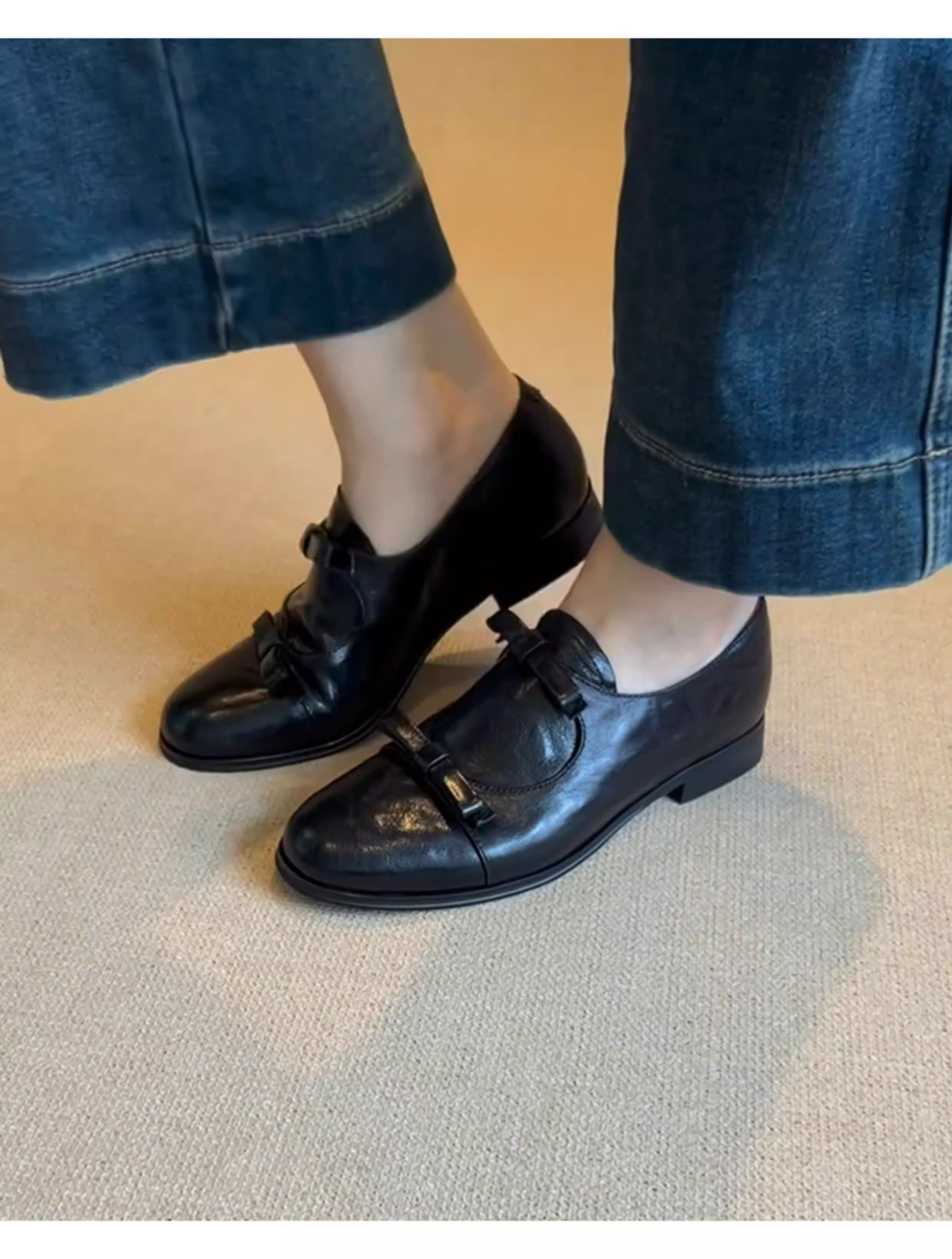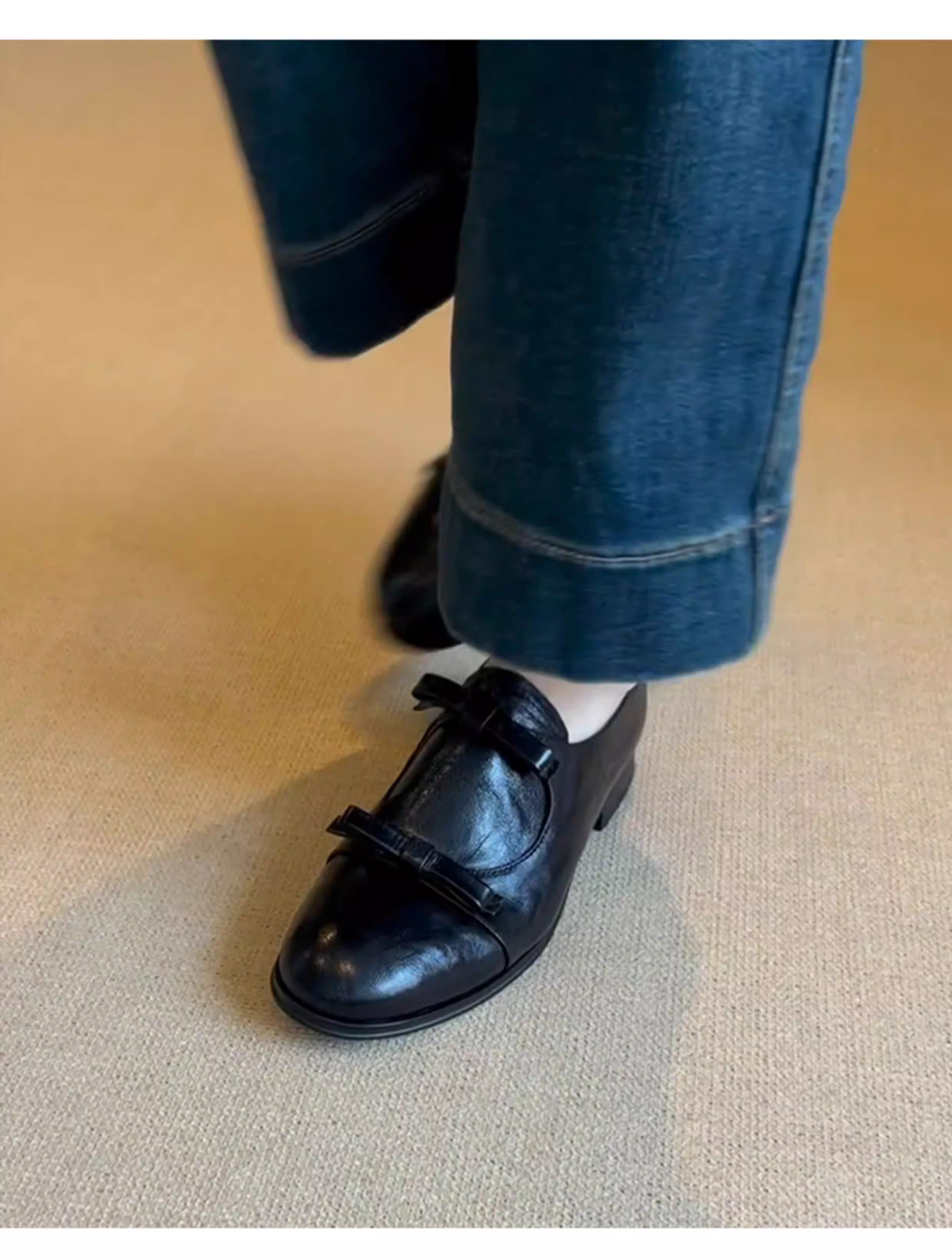 - Phiên bản da cừu ~ Giày lười kiểu Anh có mũi tròn và nơ, giày lười kiểu dáng đơn giản dành cho nữ, giày đế thấp đa năng.