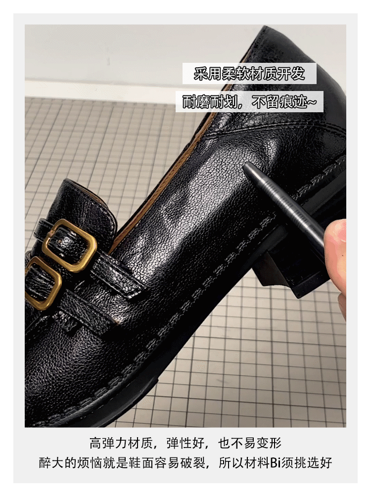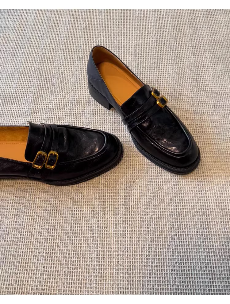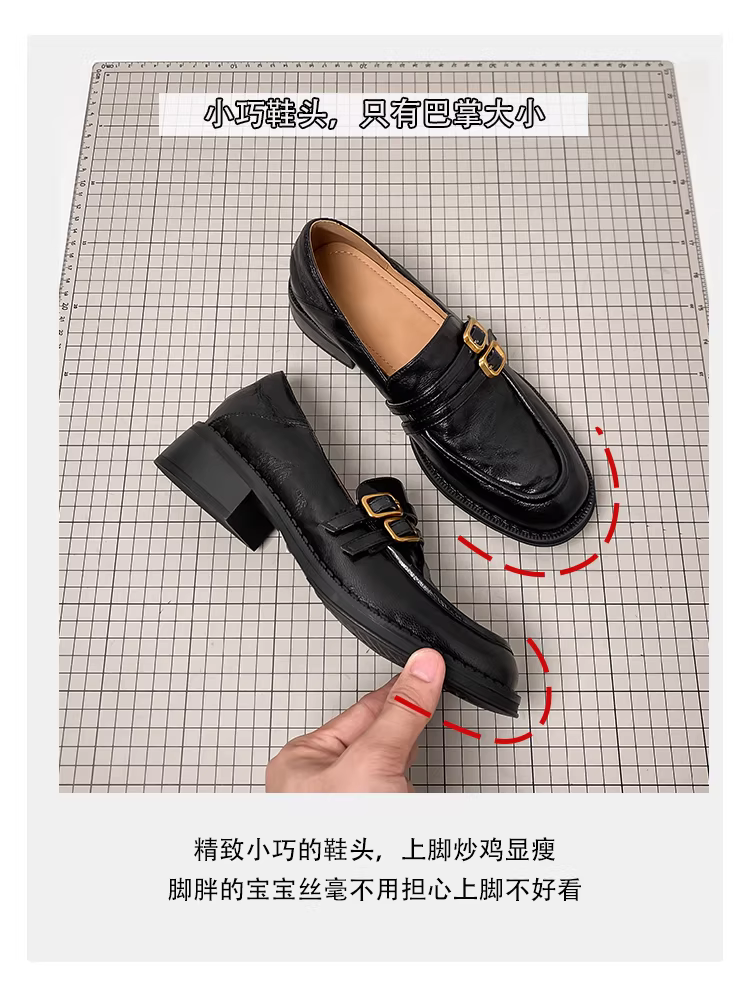 - Phiên bản da cừu~ Giày lười kiểu Anh, giày đồng phục JK lười biếng dành cho nữ, gót dày, da thật, giày đơn mũi tròn cổ điển