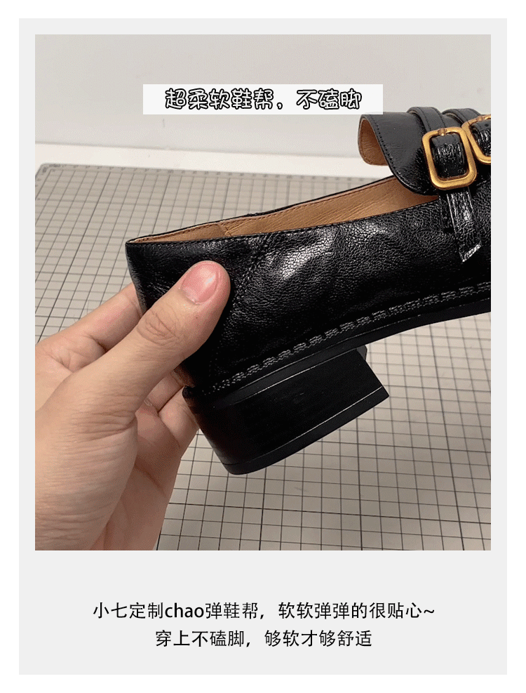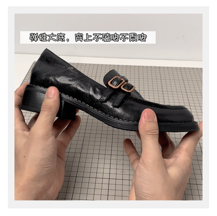 Phiên bản da cừu~ Giày lười kiểu Anh, giày đồng phục JK lười biếng dành cho nữ, gót dày, da thật, giày đơn mũi tròn cổ điển