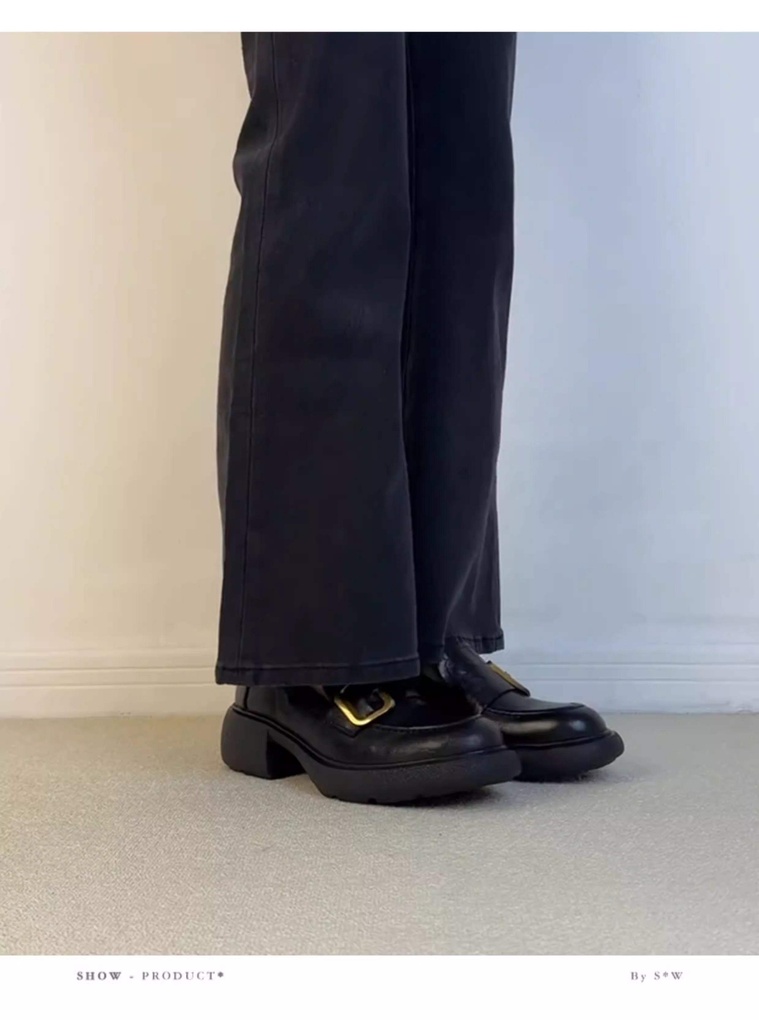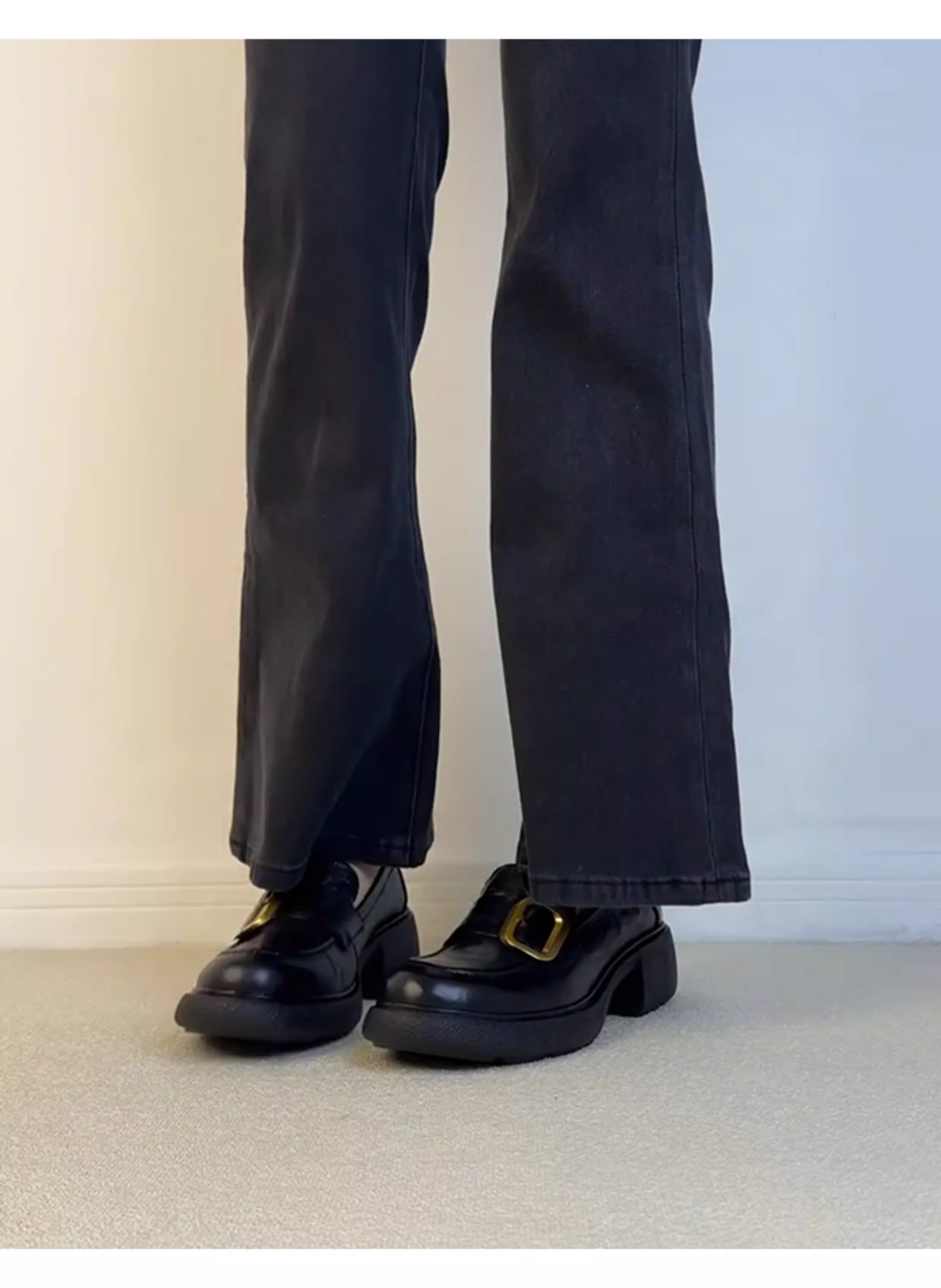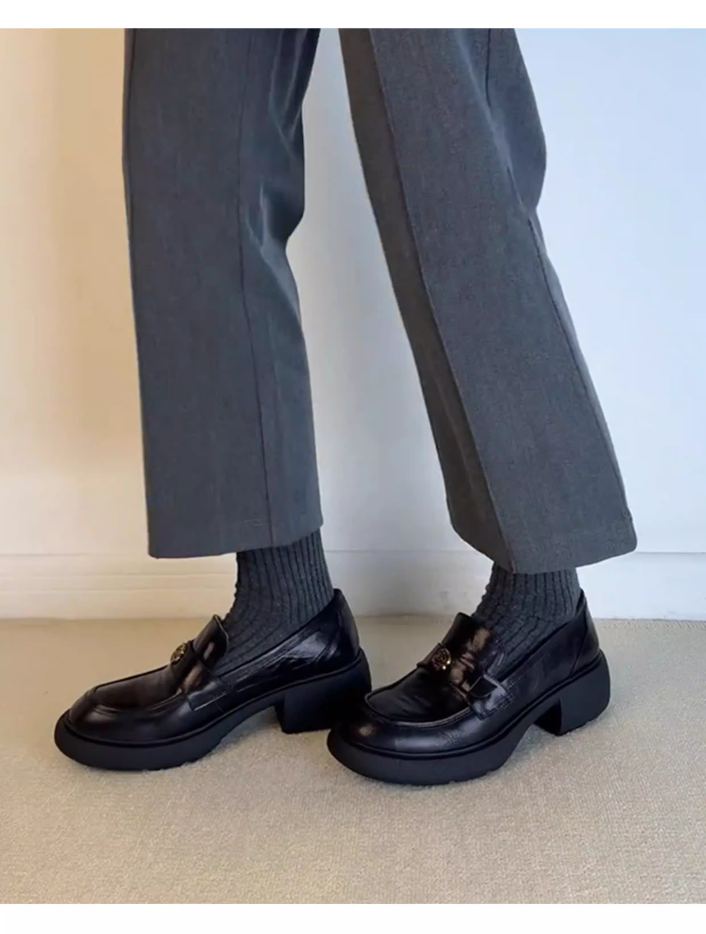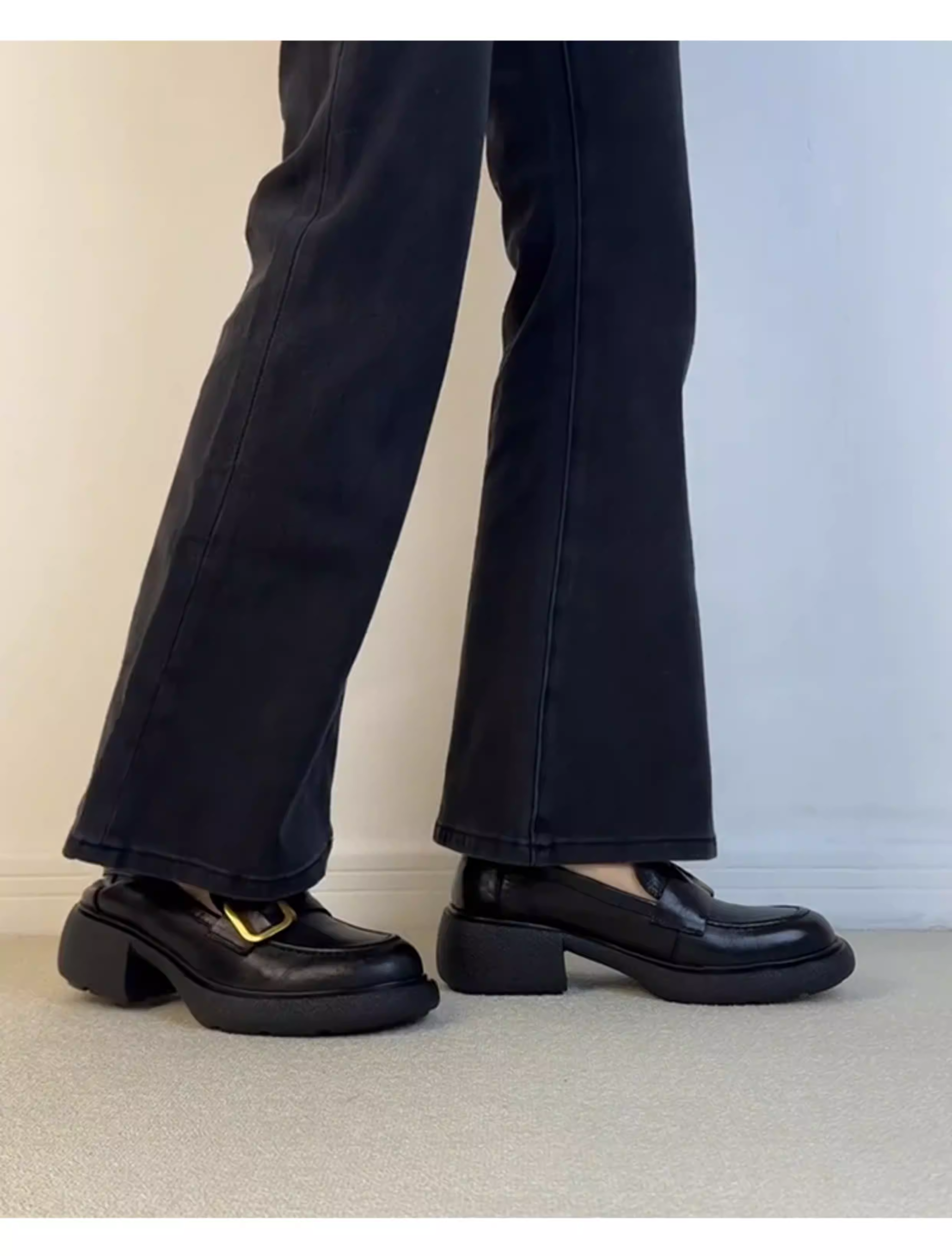 Phiên bản da cừu ~ Giày lười kiểu cổ điển hoa trà đa năng dành cho nữ với gót dày, giày da đế dày thoải mái để đi làm