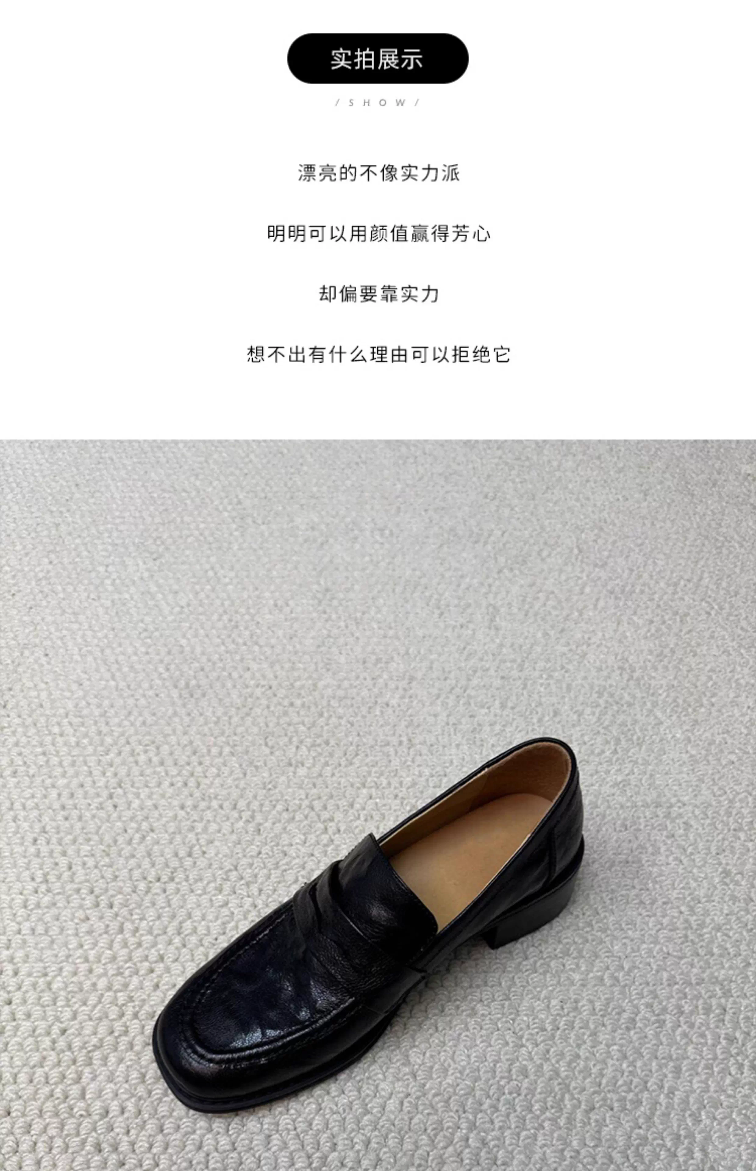 - Phiên bản da cừu ~ Giày lười kiểu lười đi dành cho nữ, giày da thật màu đen cổ điển đơn giản, mũi vuông, gót dày, giày da nhỏ.
