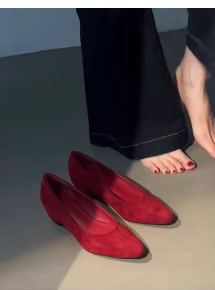 - Phiên bản da cừu ~ Giày lười kiểu retro tối giản tăng chiều cao dành cho nữ, giày đi làm đa năng bằng da lộn mũi nhọn kiểu chữ V giúp thon gọn