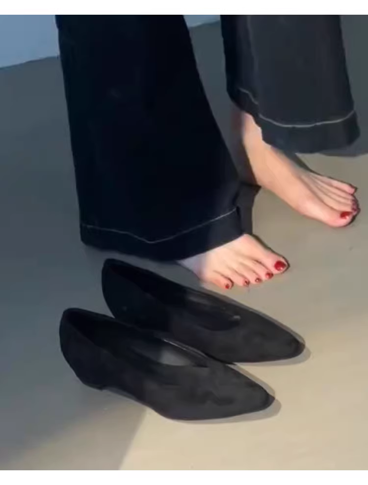 Phiên bản da cừu ~ Giày lười kiểu retro tối giản tăng chiều cao dành cho nữ, giày đi làm đa năng bằng da lộn mũi nhọn kiểu chữ V giúp thon gọn