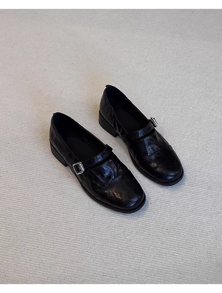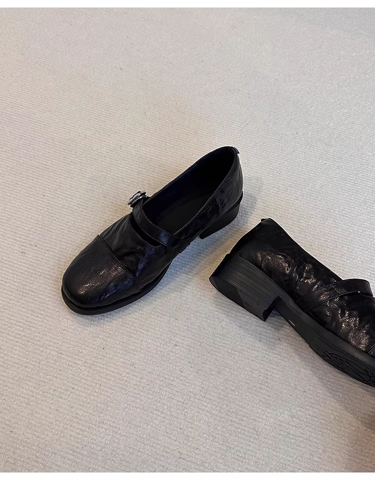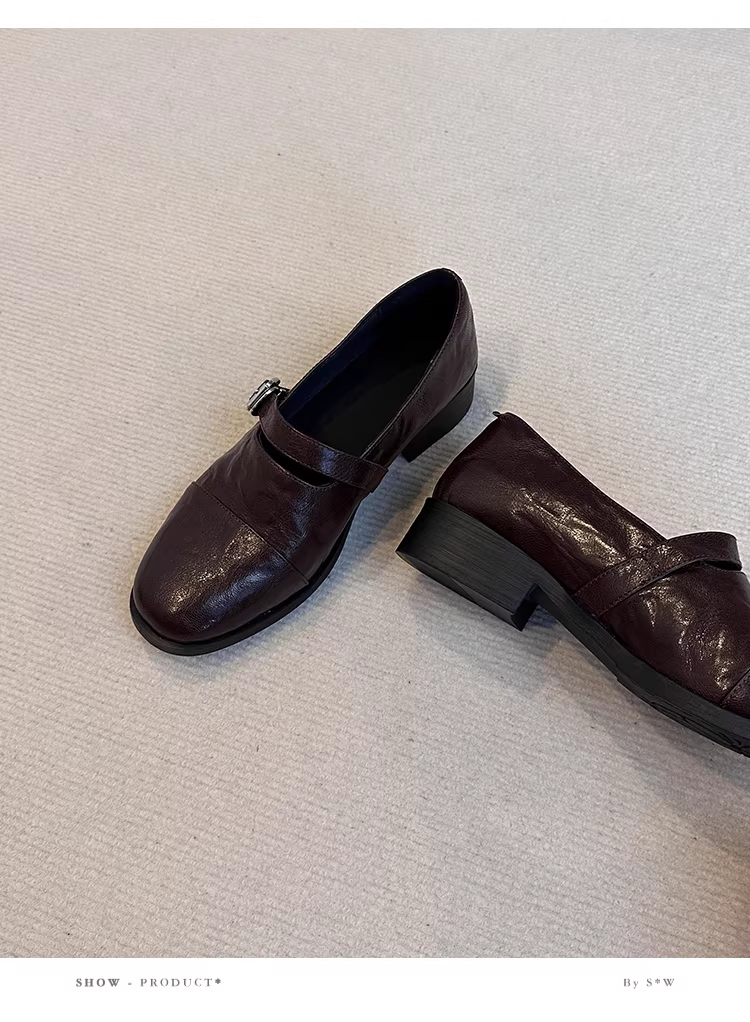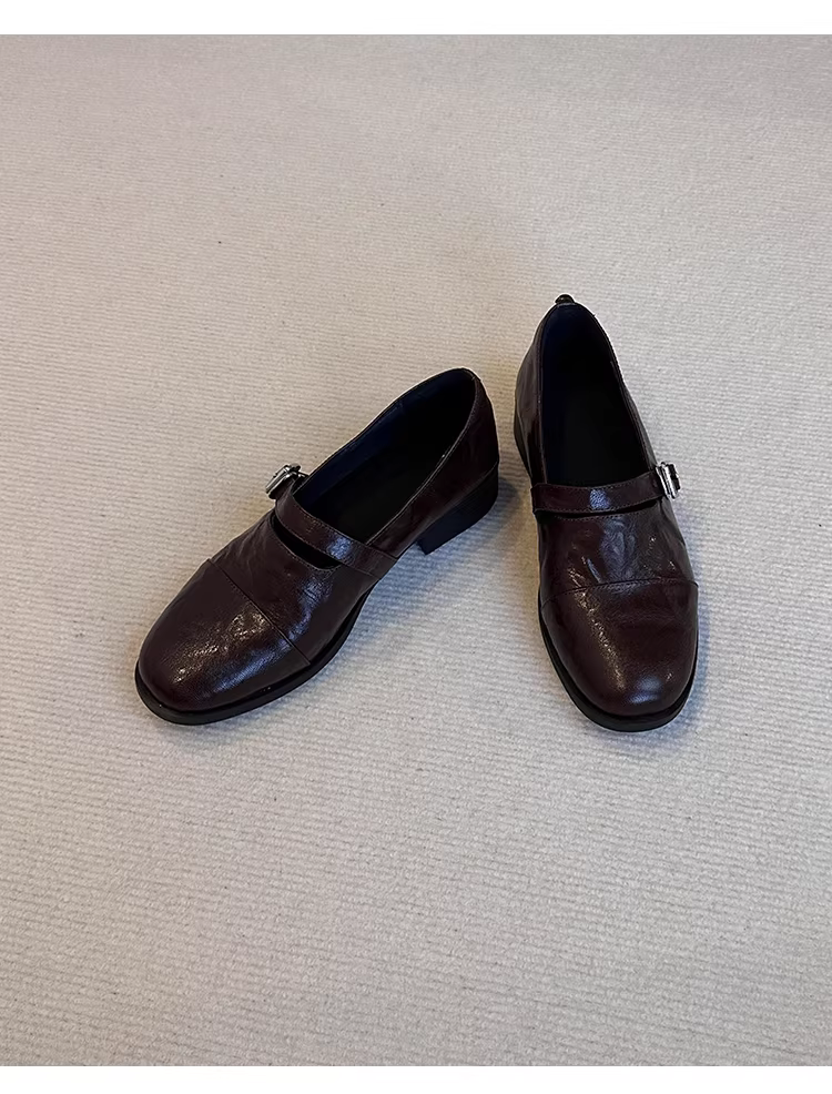 - Phiên bản da cừu ~ Giày lười Mary Jane kiểu cổ điển đế mềm bằng da thật dành cho nữ, giày da nhỏ có quai đơn bằng da thật đơn giản