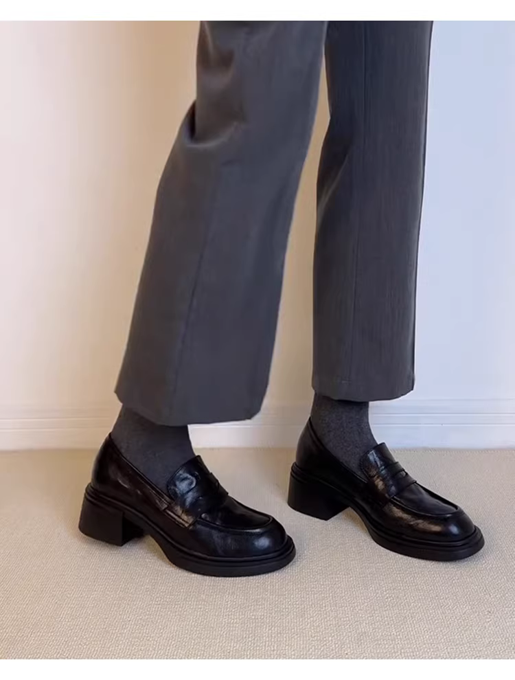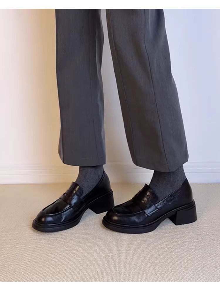 Phiên bản da cừu ~ Giày lười màu đen cổ điển tối giản dành cho nữ, kiểu lười, đa năng, thích hợp đi làm, giày đế thấp.