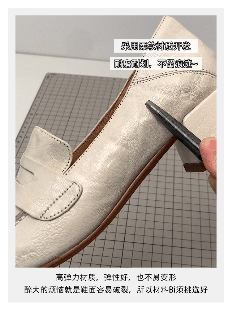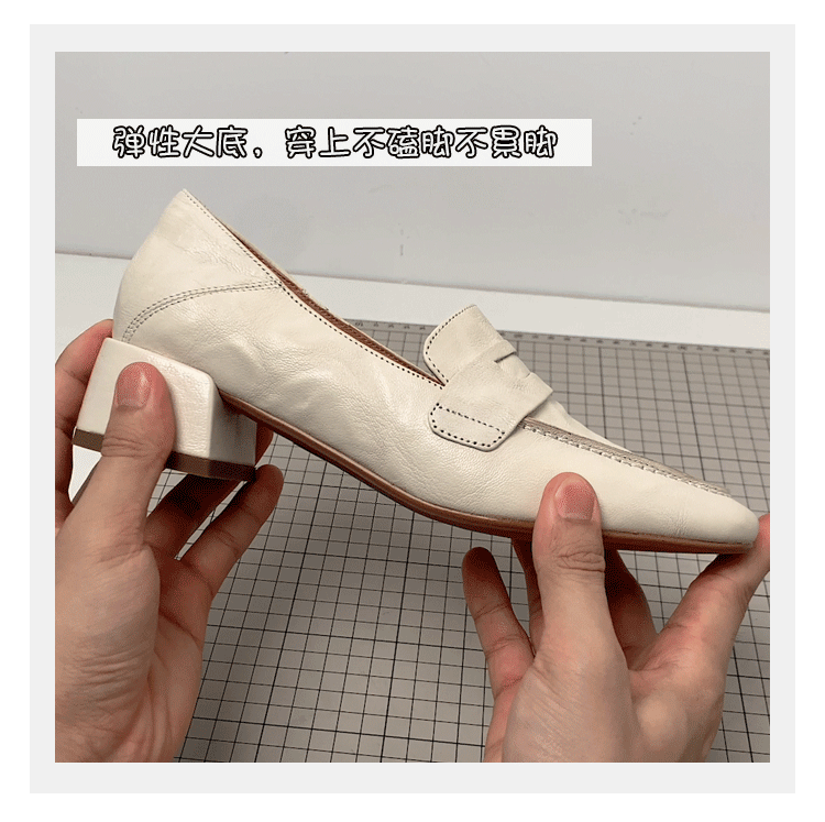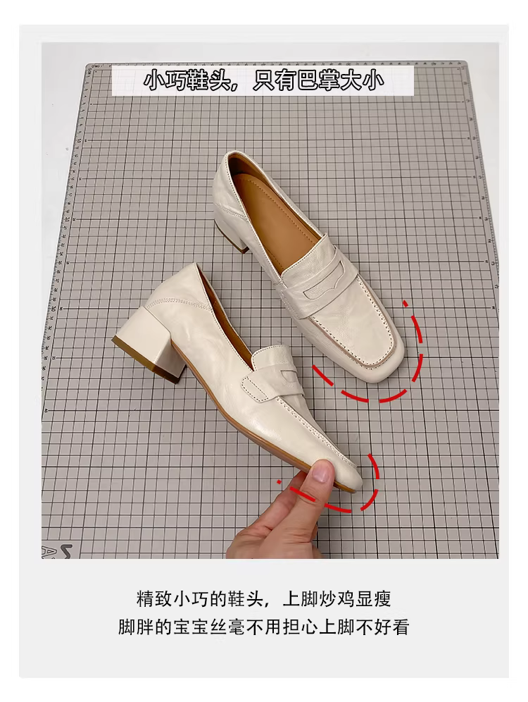 - Phiên bản da cừu ~ giày lười màu trắng dành cho nữ, giày da nhỏ kiểu Anh, giày lười kiểu dáng đơn giản, giày đi làm đế dày bằng da thật