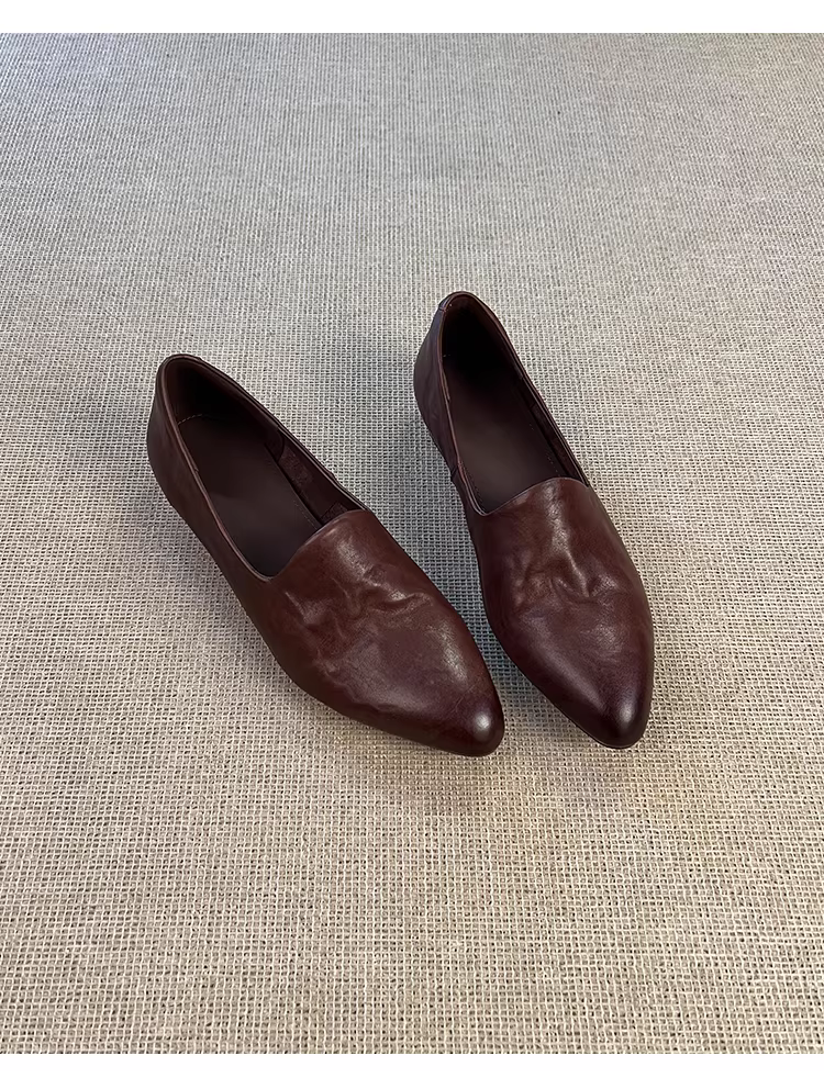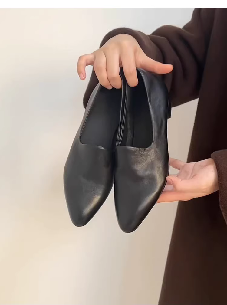 - Phiên bản da cừu ~ Giày lười mũi nhọn bằng da thật phong cách cổ điển dành cho nữ, giày đi làm đa năng, giày da đế thấp.