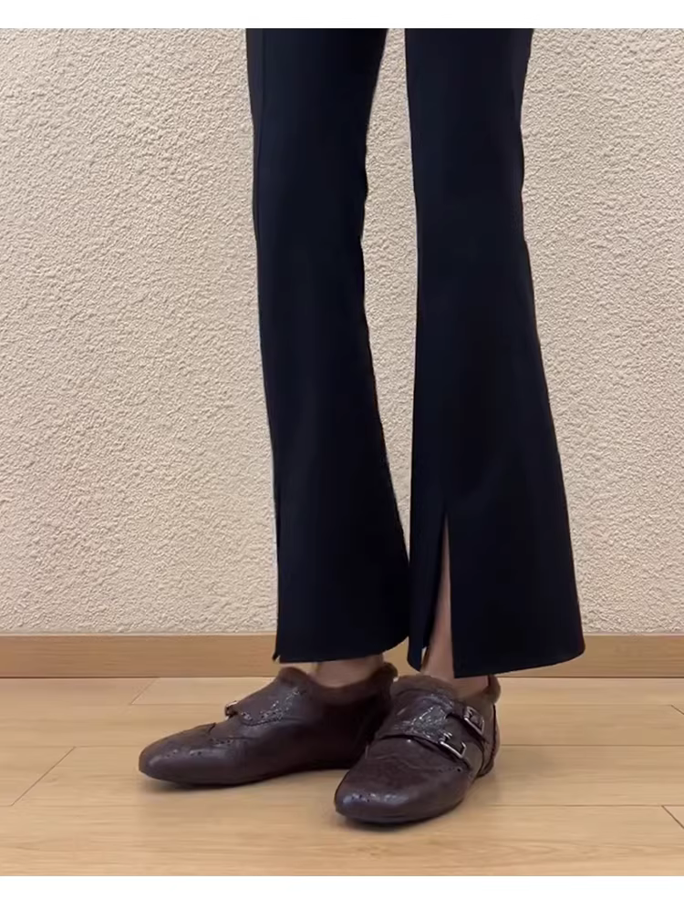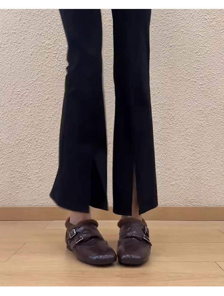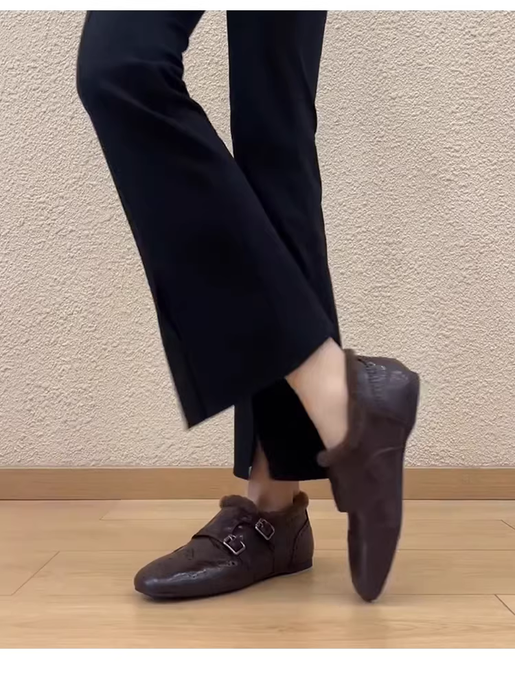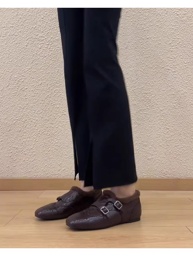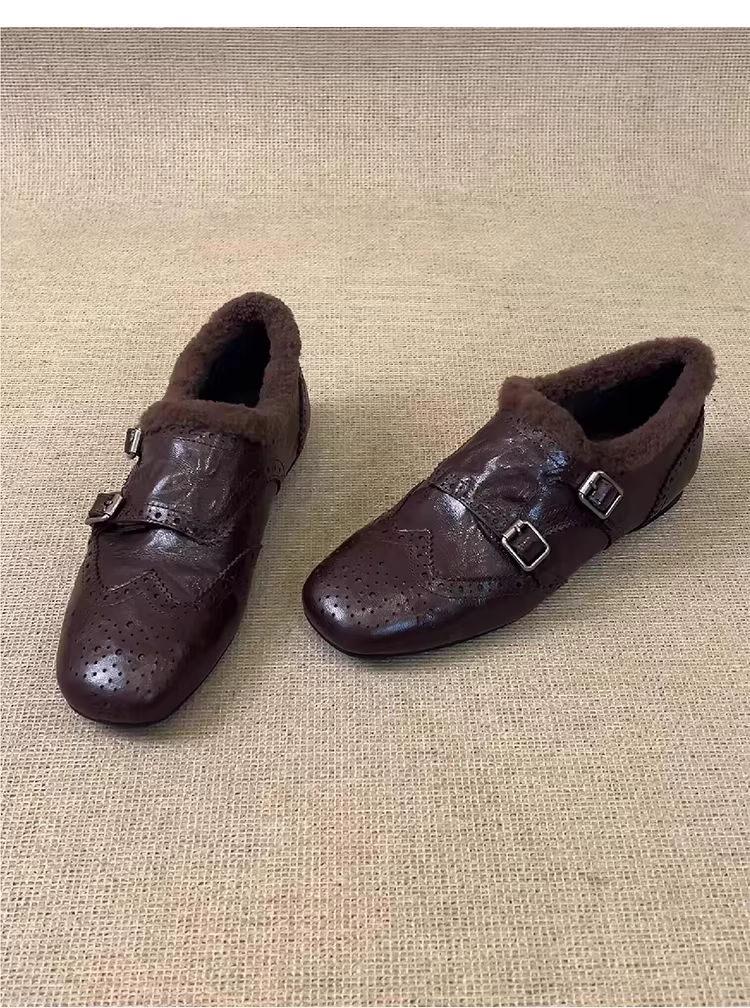 - Phiên bản da cừu ~ Giày lười mũi vuông bằng da thật cổ điển dành cho nữ, giày đế bằng có lông khắc kiểu Anh
