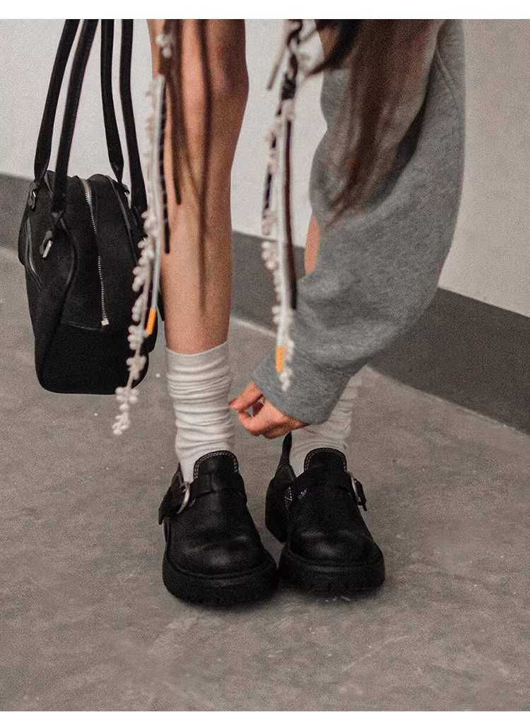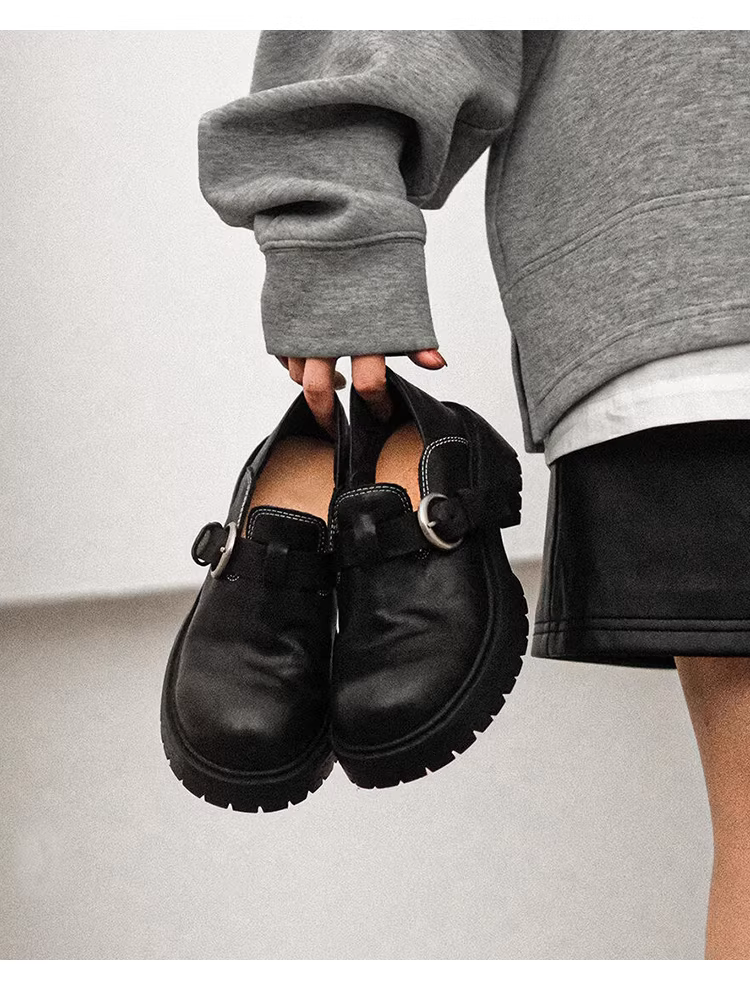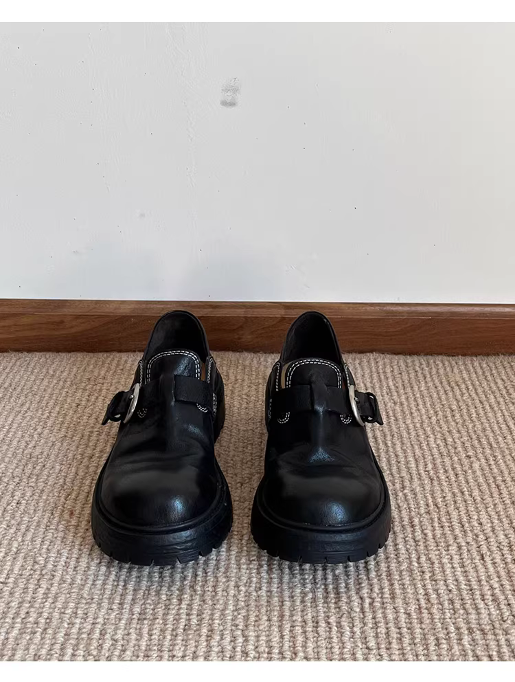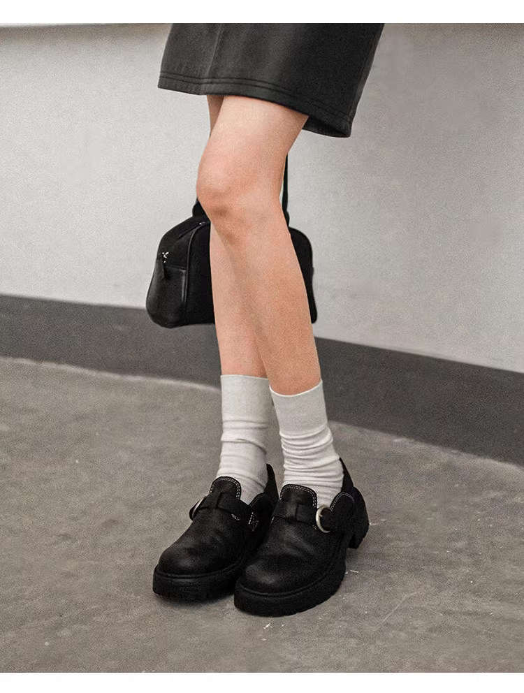- Phiên bản da cừu ~ Giày lười tăng chiều cao đế dày đa năng dành cho nữ, da thật cổ điển, mũi giày lớn, kiểu lười, gót dày, giày da nhỏ cắt sâu