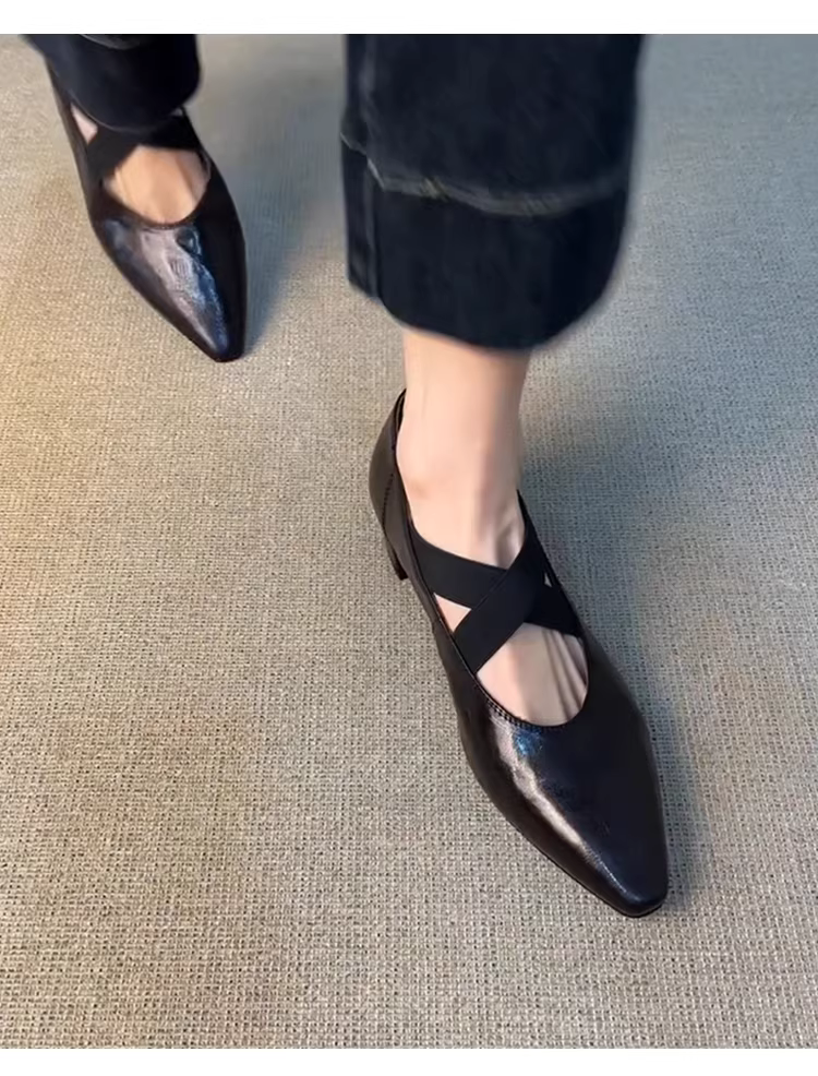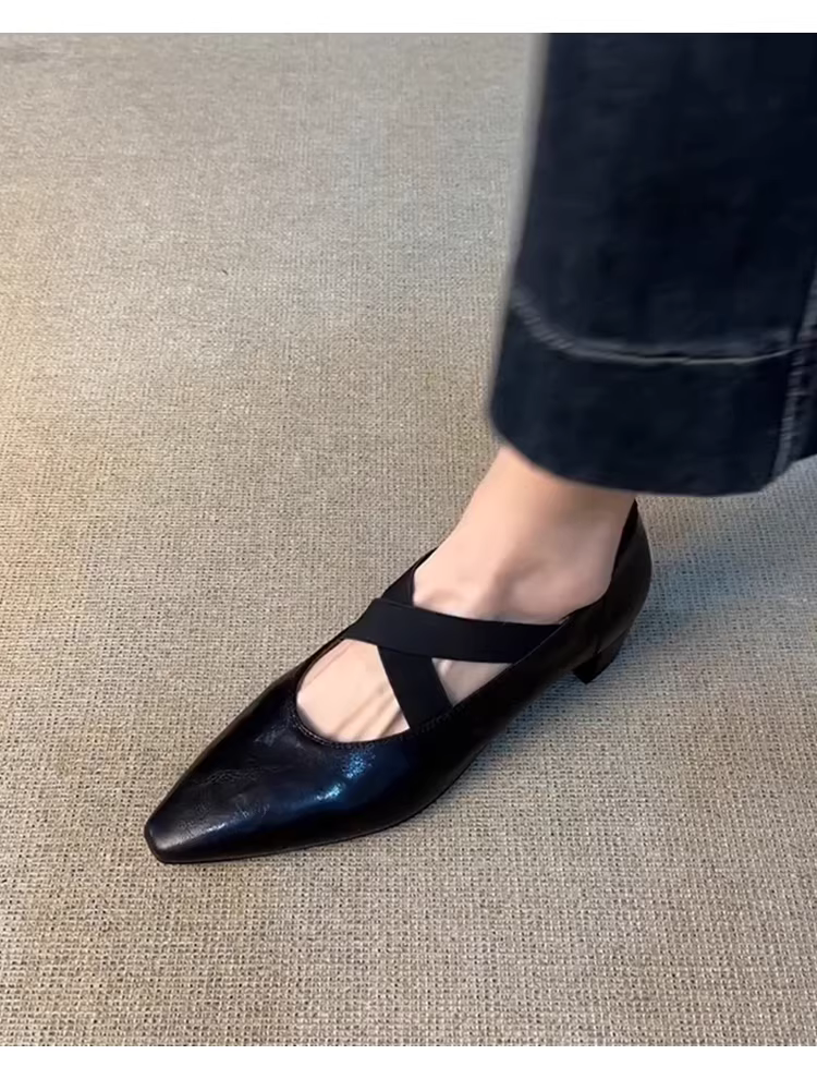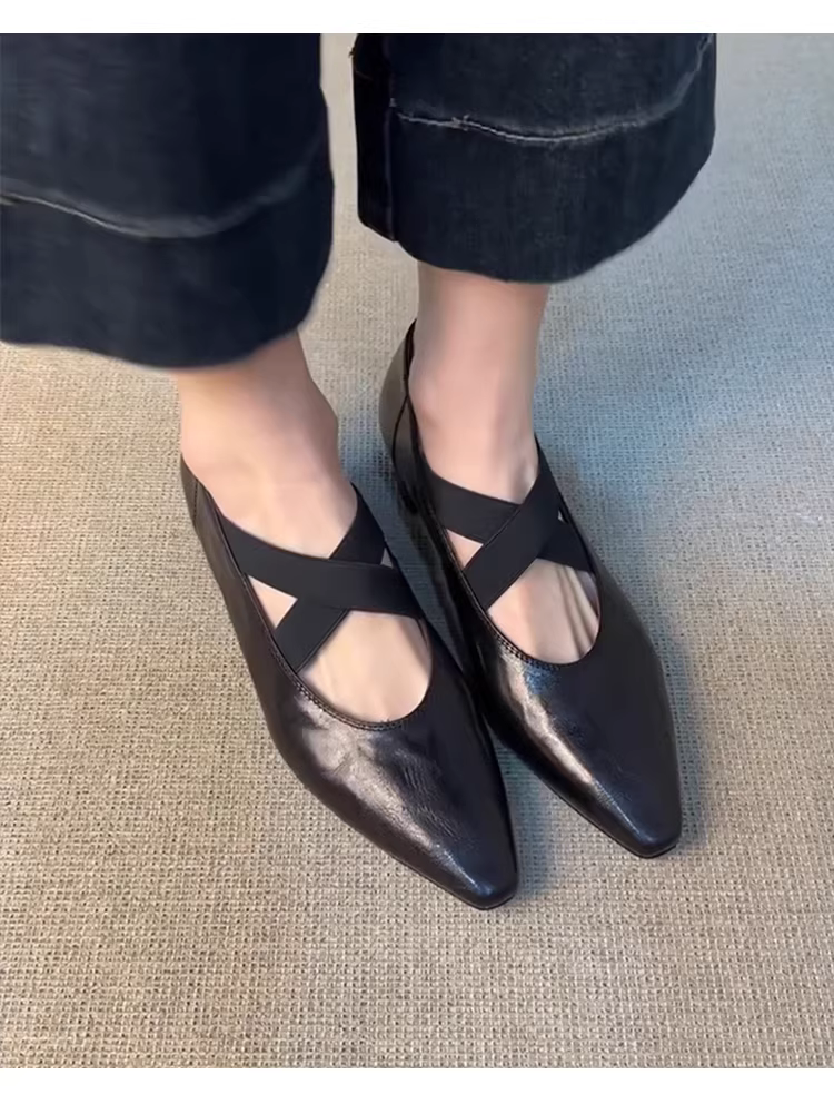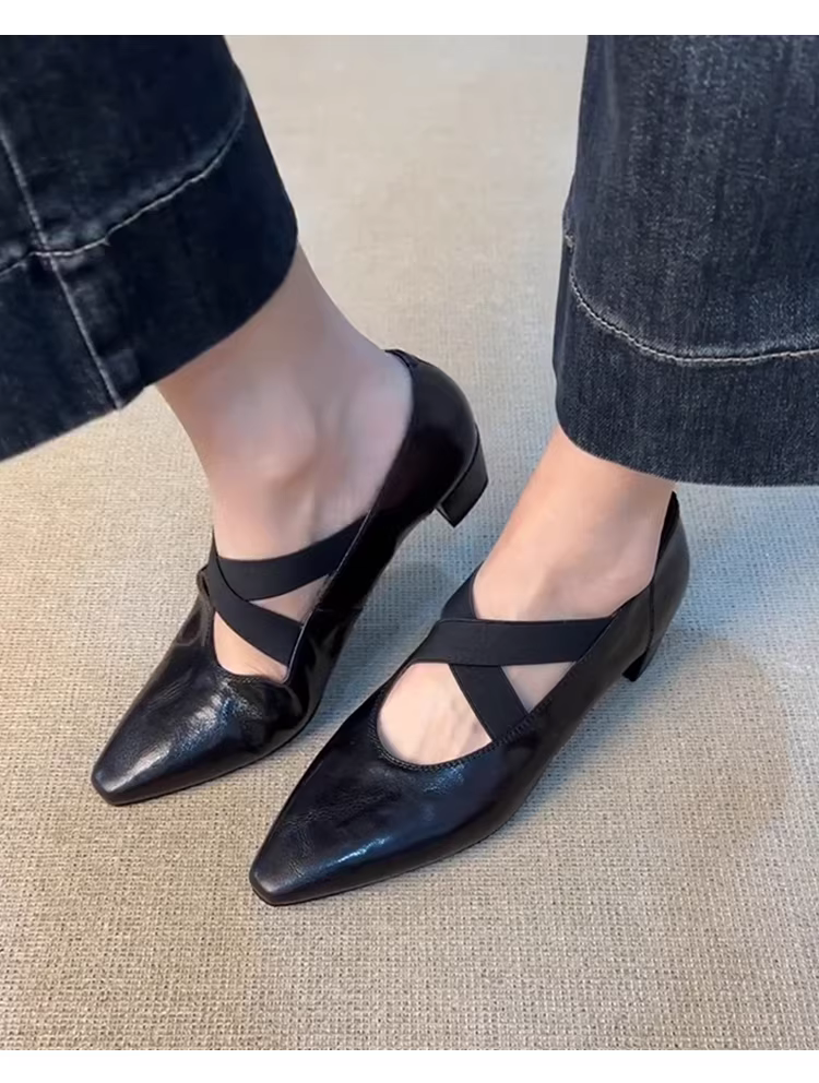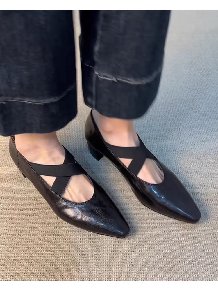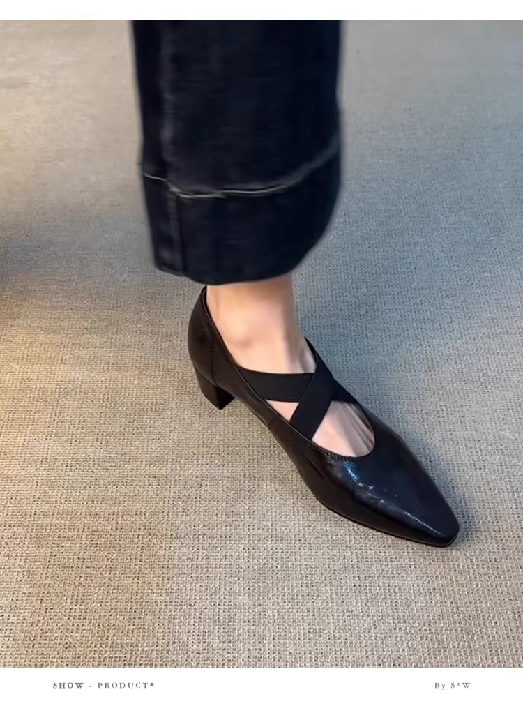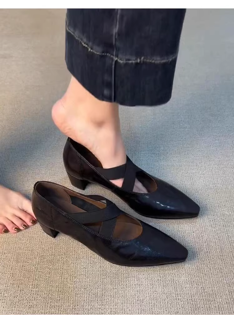 Phiên bản da cừu ~ Giày Mary Jane có dây đeo chéo cổ điển dành cho nữ, giày da thật có miệng nông, giày cổ điển đi làm