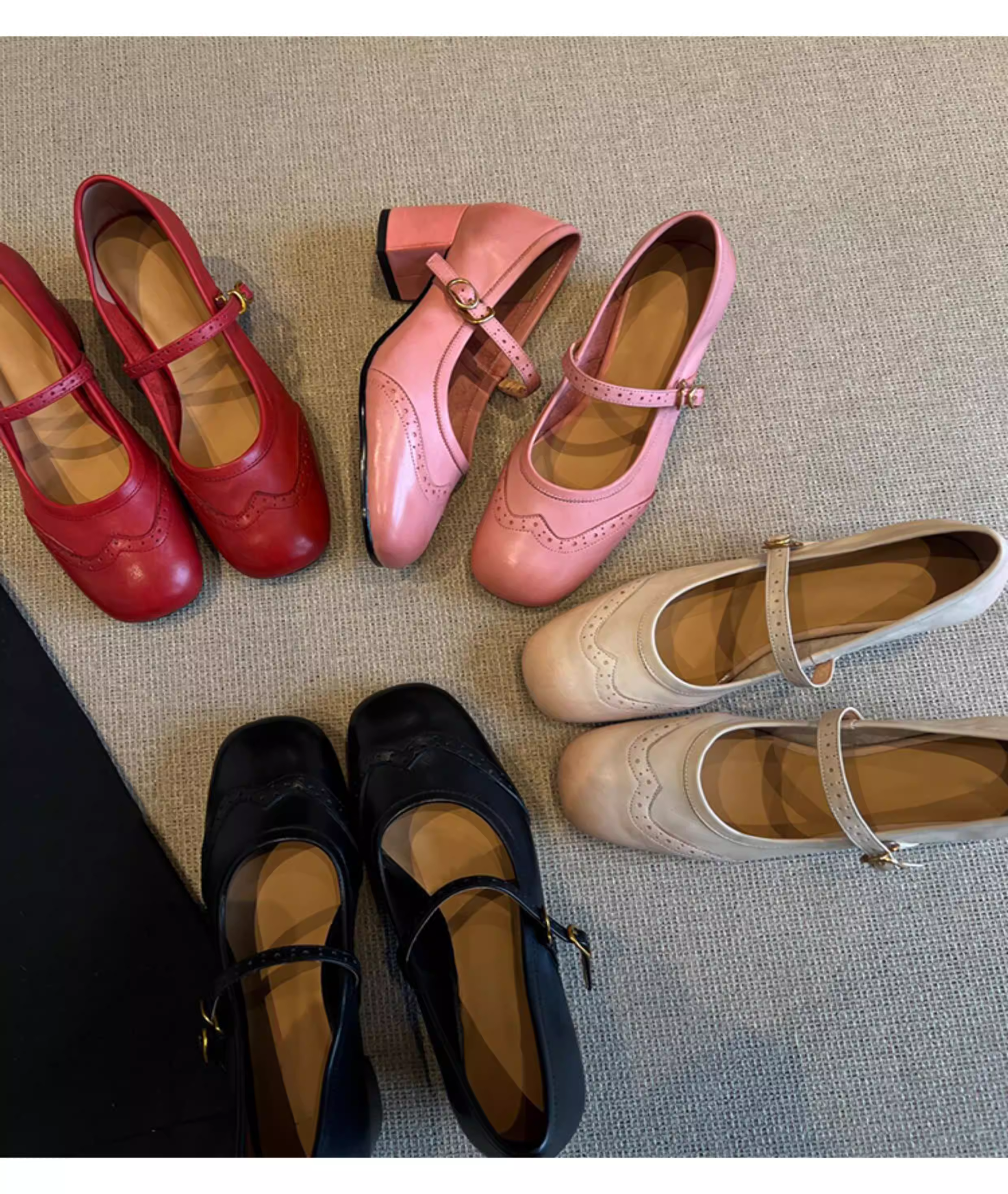 - Phiên bản da cừu ~ Giày Mary Jane đế dày, quai đơn, kiểu dáng đa năng dành cho nữ, giày bệt da thật kiểu retro, mũi vuông, kiểu brogue