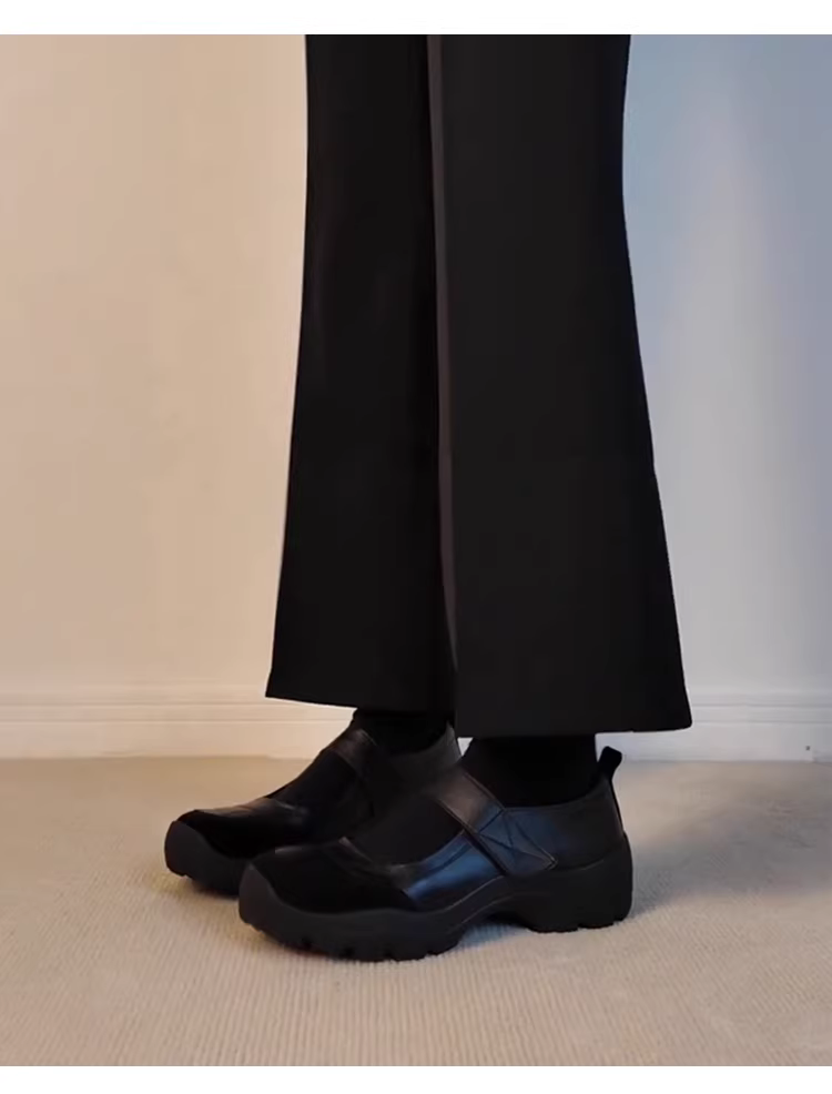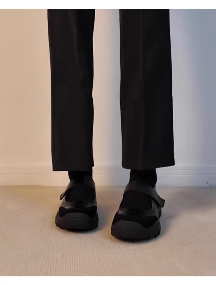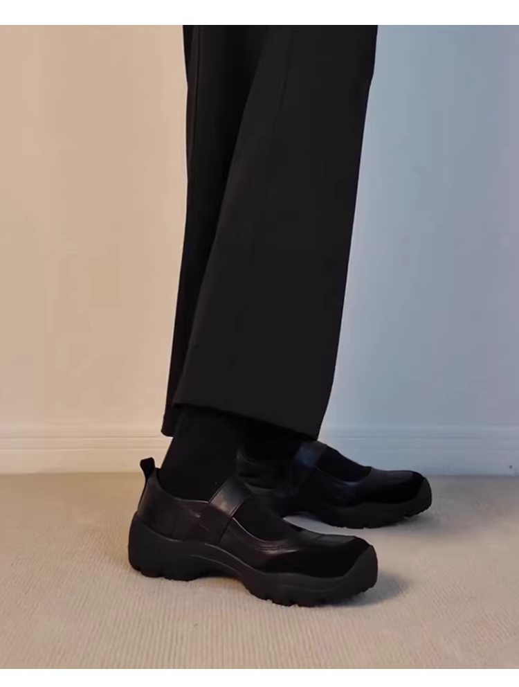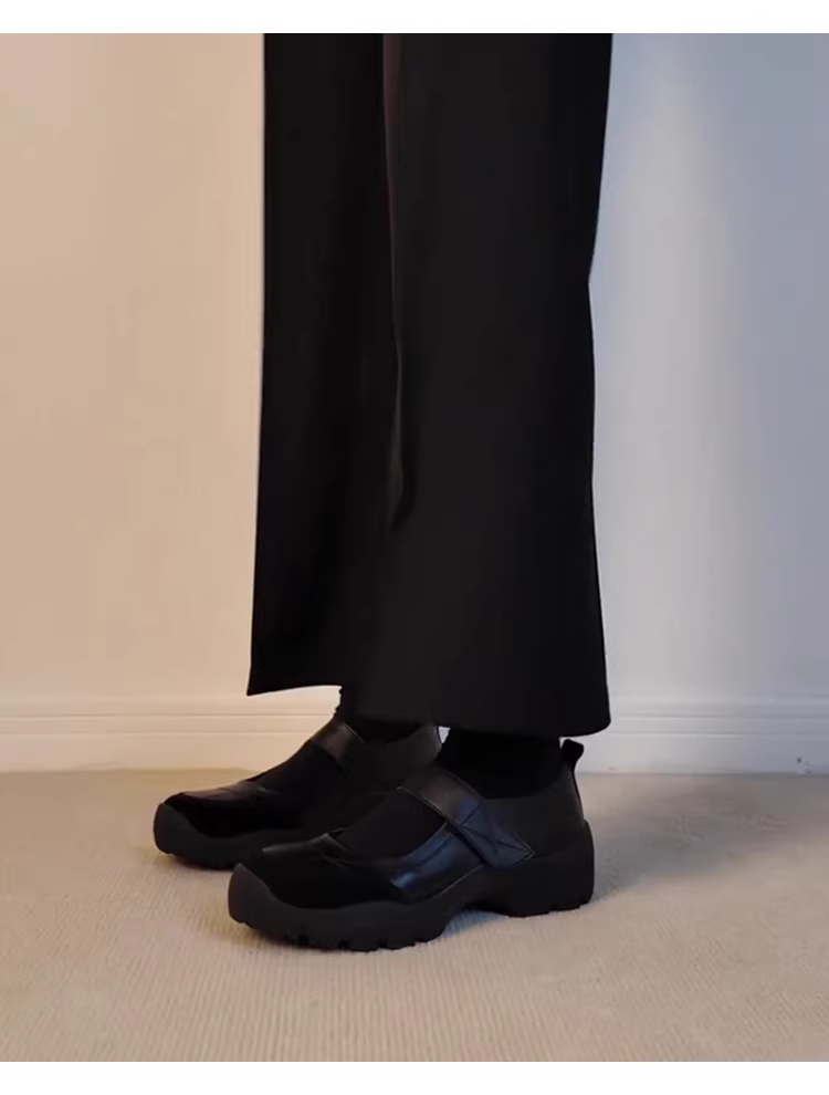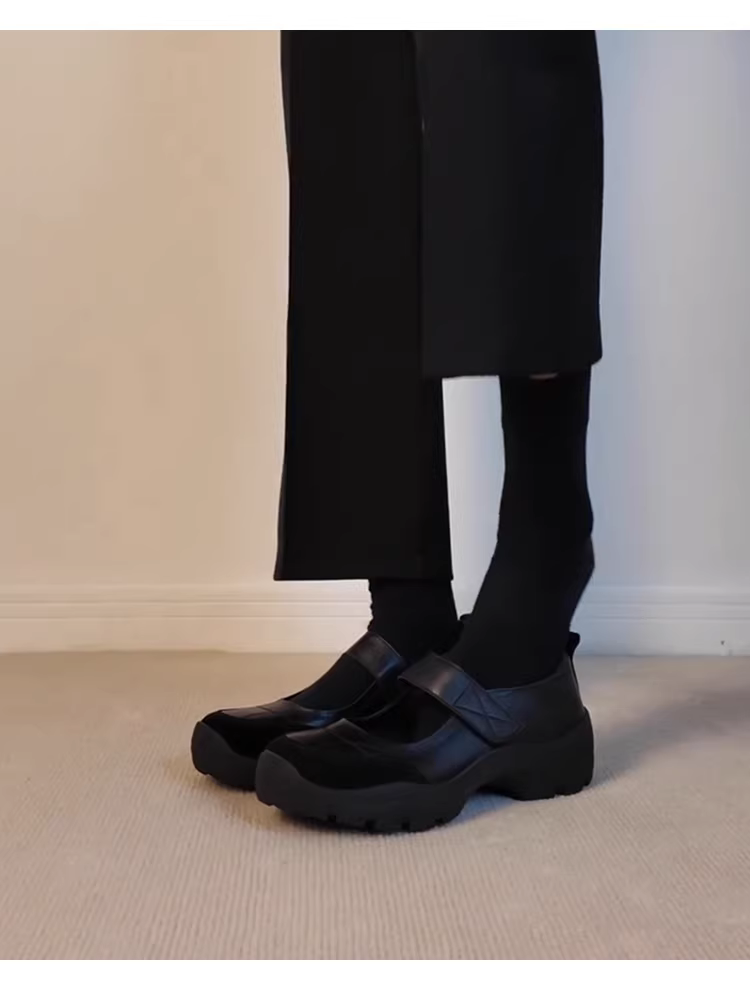 - Phiên bản da cừu ~ Giày Mary Jane đi làm có khóa dán màu đen đa năng dành cho nữ, giày da thật đế dày kiểu cổ điển nông