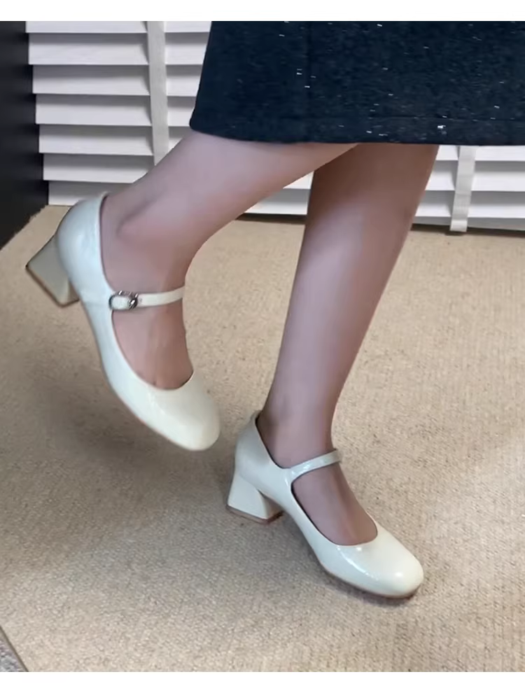 - Phiên bản da cừu ~ Giày Mary Jane gót thấp một dây kiểu Pháp dành cho nữ, mũi vuông nông, da thật, giày đơn giản dị và thanh lịch.