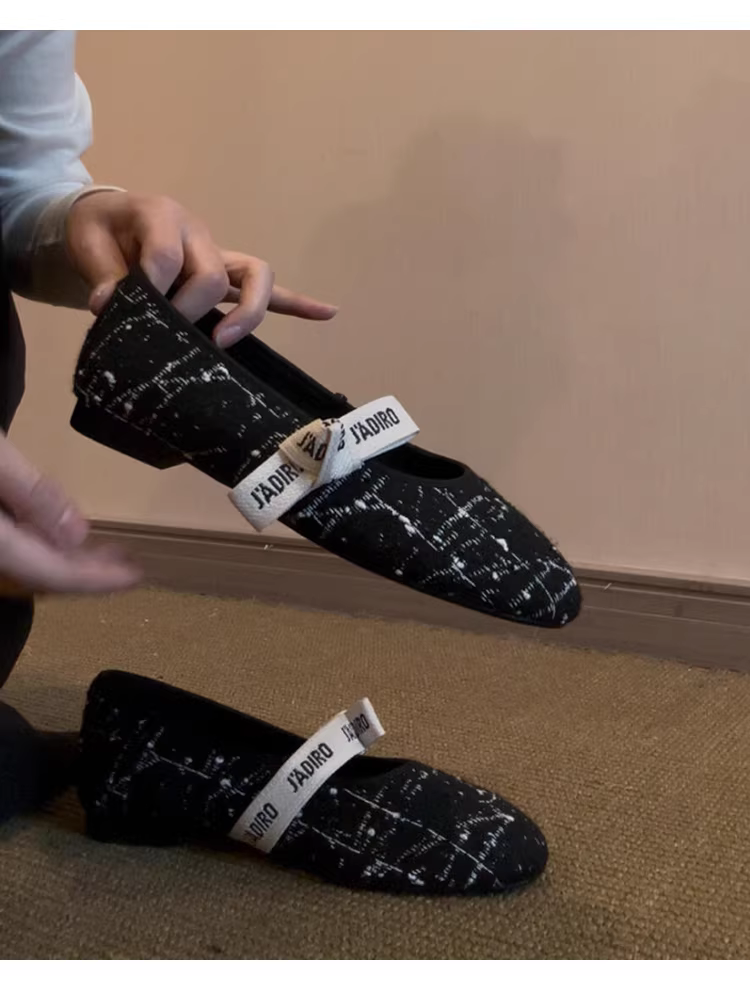 - Phiên bản da cừu ~ Giày Mary Jane miệng nông kiểu Chanel dành cho nữ có nơ, mũi tròn, đế phẳng, giày đơn đa năng