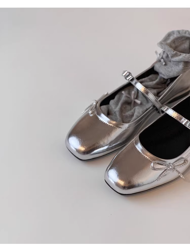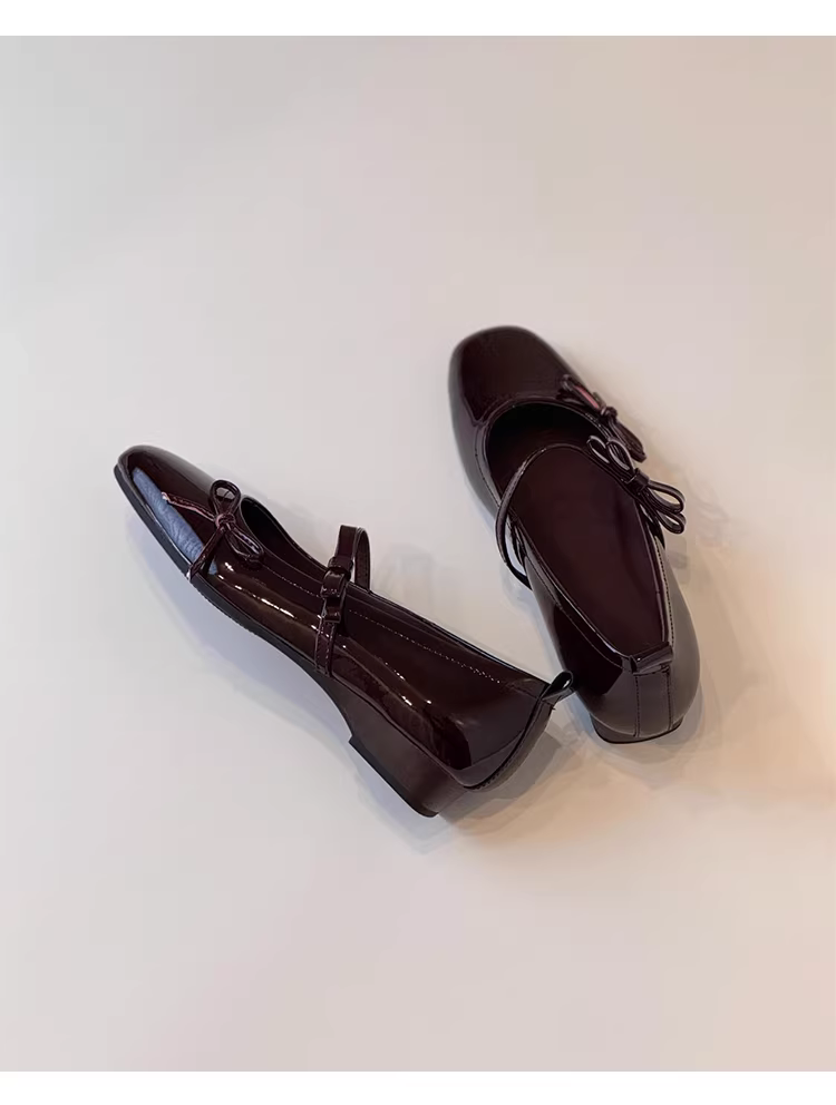 Phiên bản da cừu ~ Giày Mary Jane mũi vuông kiểu Pháp thanh lịch có khóa, giày nữ đế thấp miệng nông có nơ, phong cách ngọt ngào.