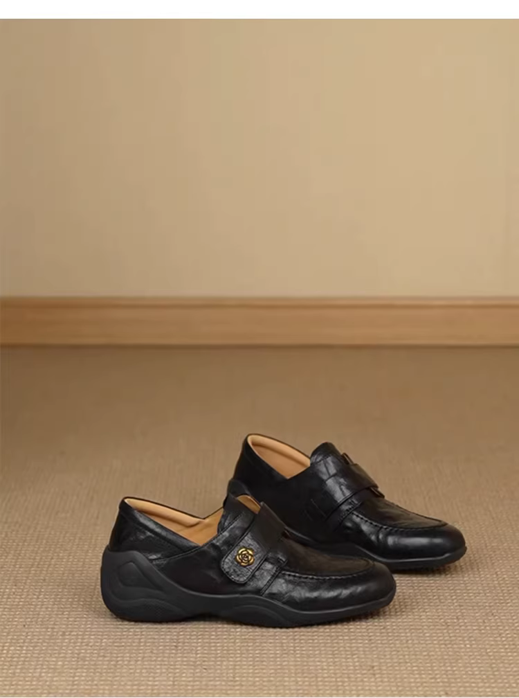 Phiên bản da cừu~ Giày múa ba lê kiểu Pháp dành cho nữ có khóa dán, giày lười không dây, giày da hoa trà đế dày