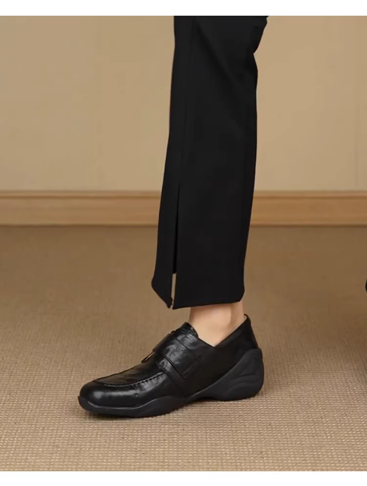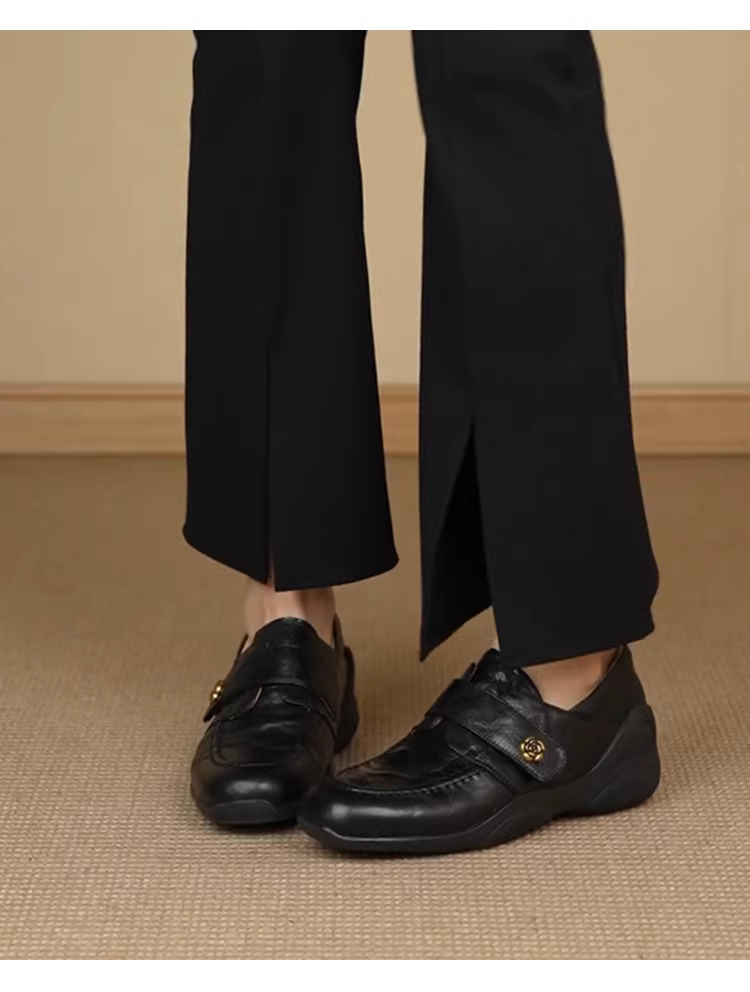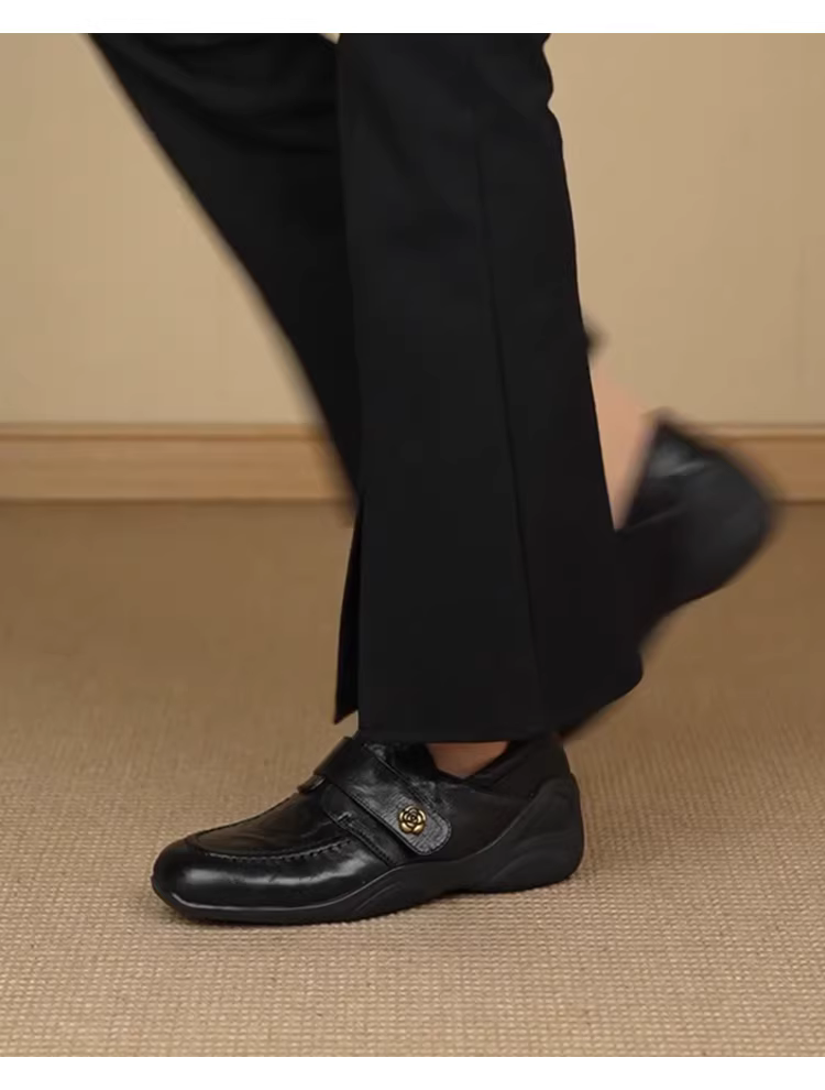 - Phiên bản da cừu~ Giày múa ba lê kiểu Pháp dành cho nữ có khóa dán, giày lười không dây, giày da hoa trà đế dày