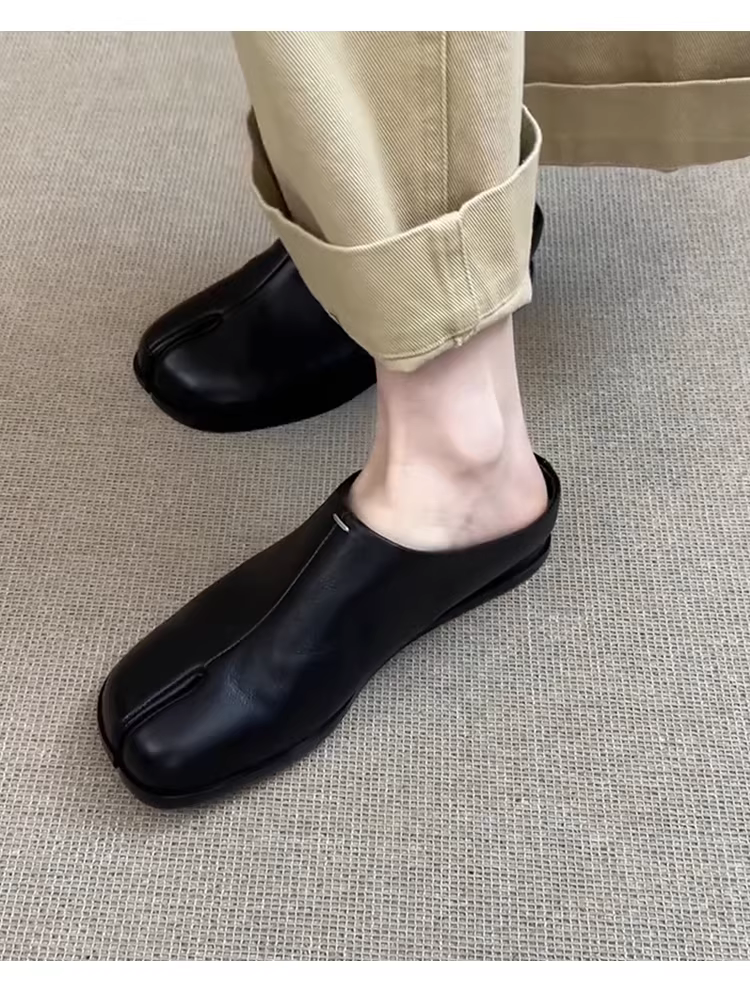 - Phiên bản da cừu ~ Giày mũi chia kiểu Anh dành cho nữ, đế bằng, dép nửa đế bằng da thật tăng chiều cao, giày mules đa năng dành cho nữ.