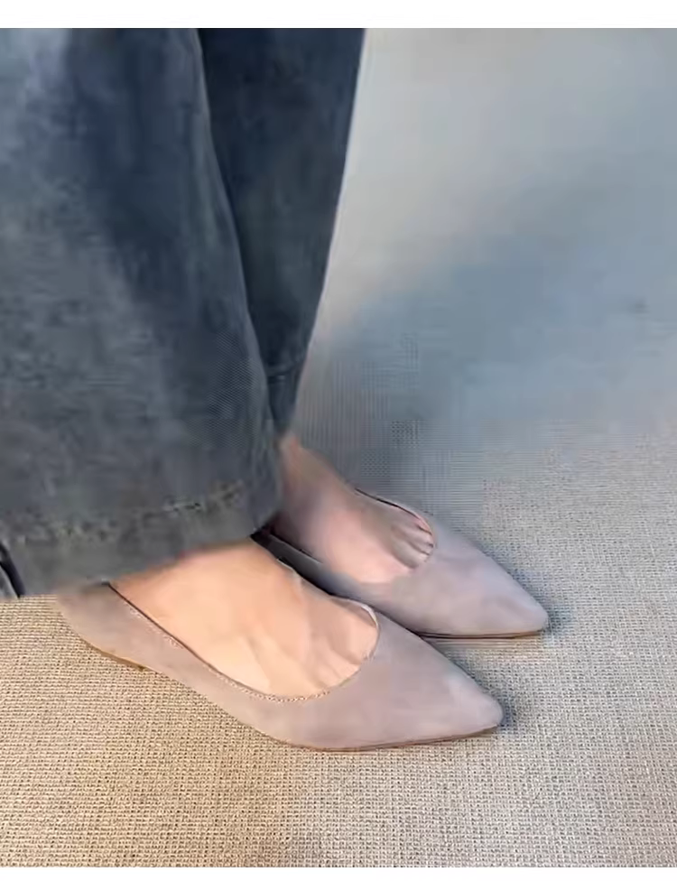 - Phiên bản da cừu ~ Giày mũi nhọn nông bằng da lộn thật dành cho nữ, giày công sở tăng chiều cao theo phong cách retro thời trang để đi làm