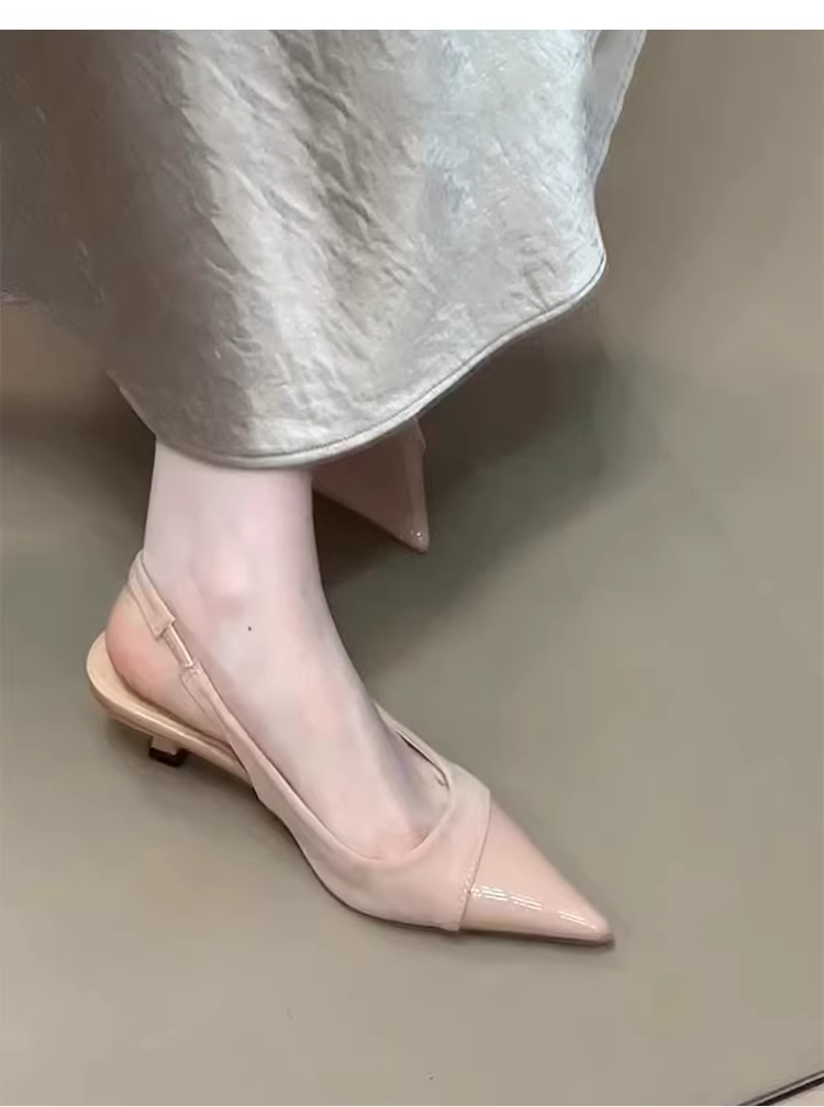 - Phiên bản da cừu ~ Giày nữ da thật phong cách cổ tích Pháp, giày sandal cao gót mũi nhọn hở lưng đơn giản, thanh lịch
