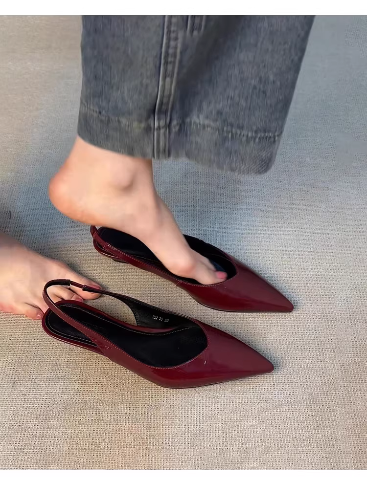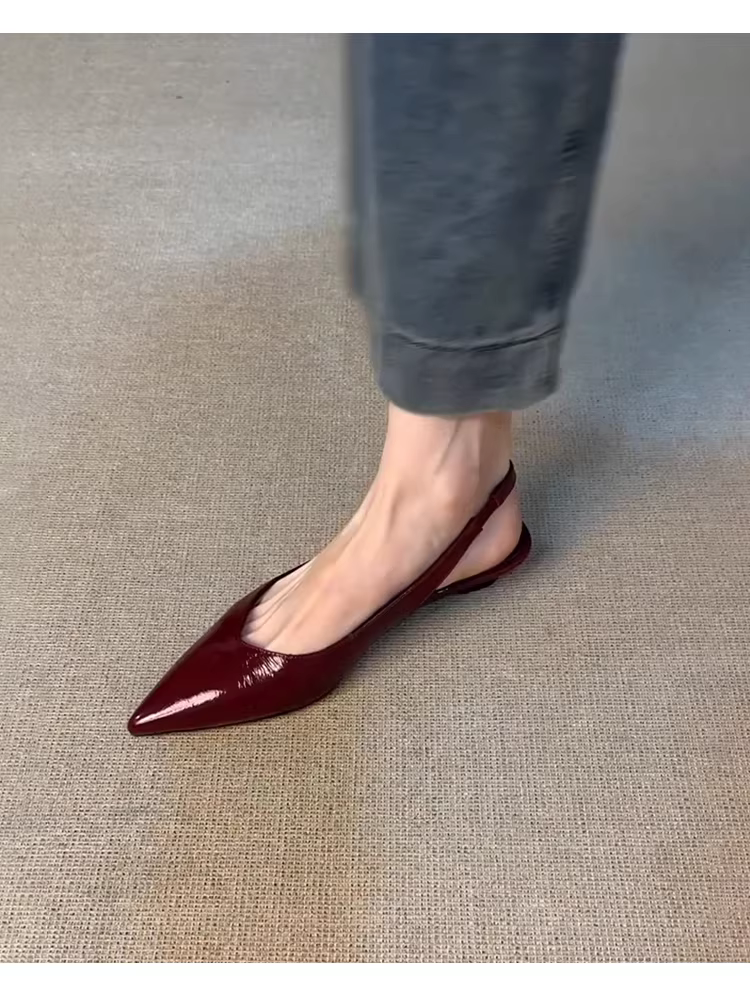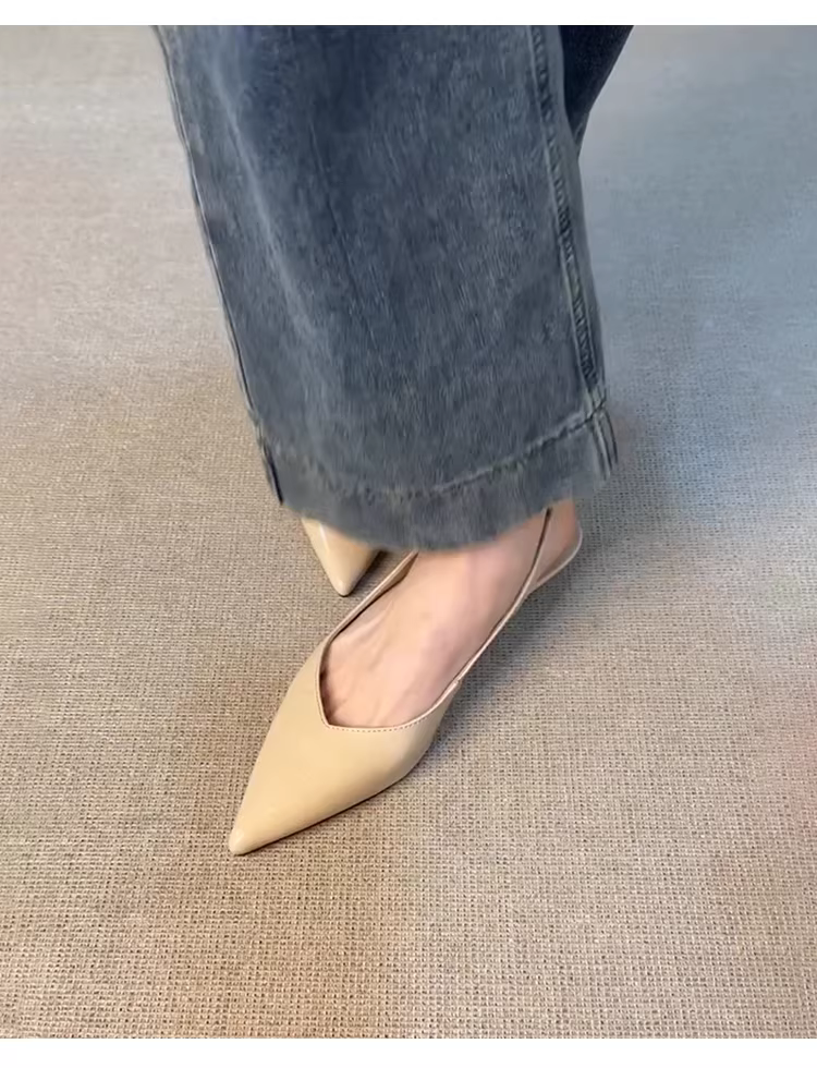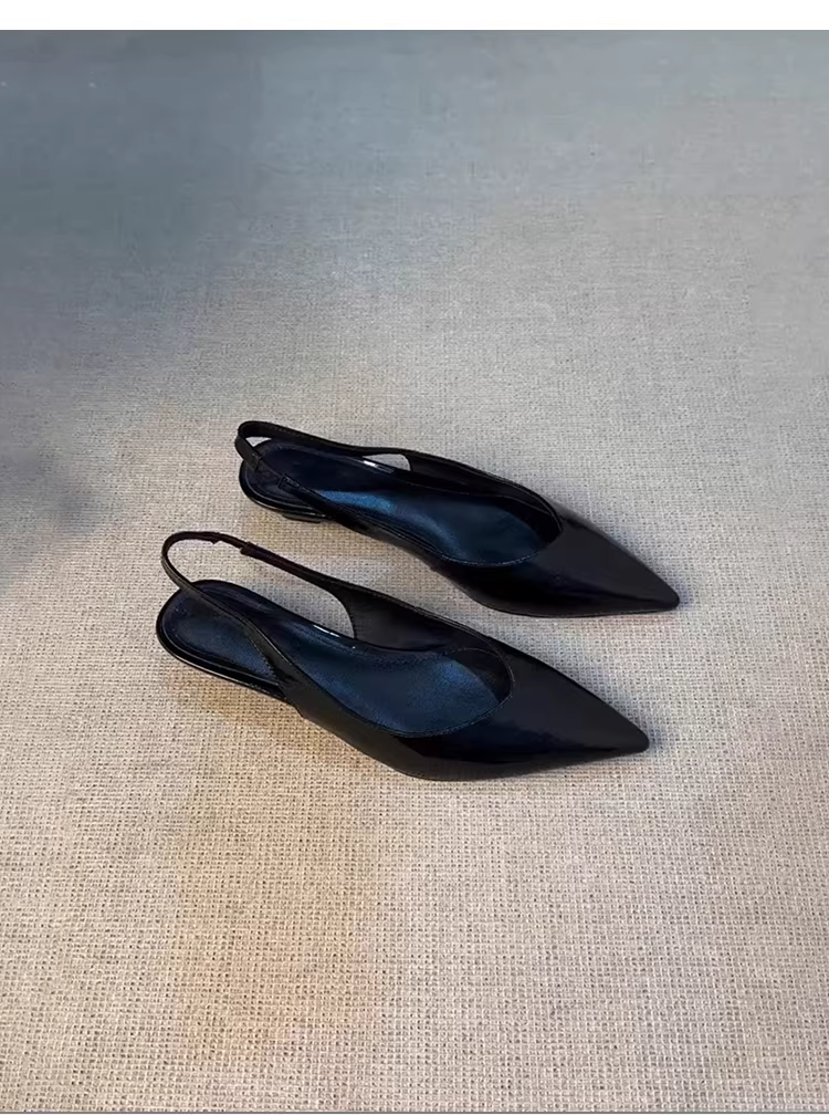 - Phiên bản da cừu ~ Giày sandal mũi nhọn hở lưng kiểu Pháp thanh lịch dành cho nữ, giày công sở đa năng mũi nhọn có mũi kín.