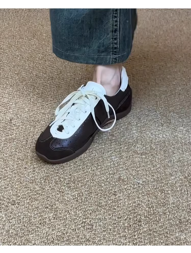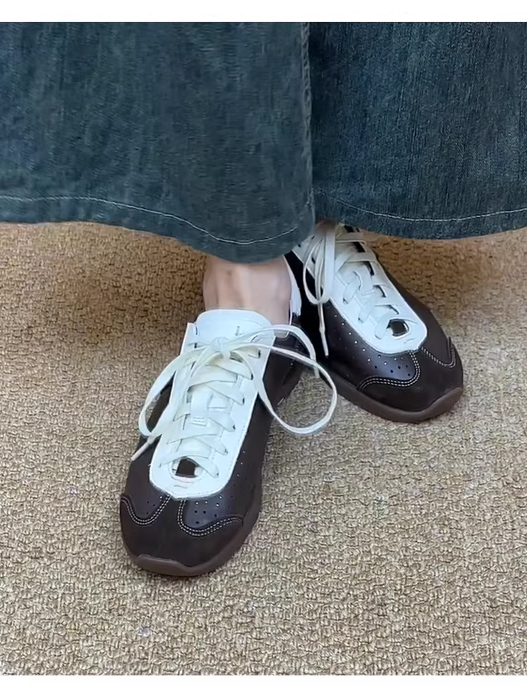 - Phiên bản da cừu ~ Giày tập múa ba lê phong cách retro độc đáo dành cho nữ, giày thể thao đa năng có dây buộc, phối màu, kiểu dáng giản dị.