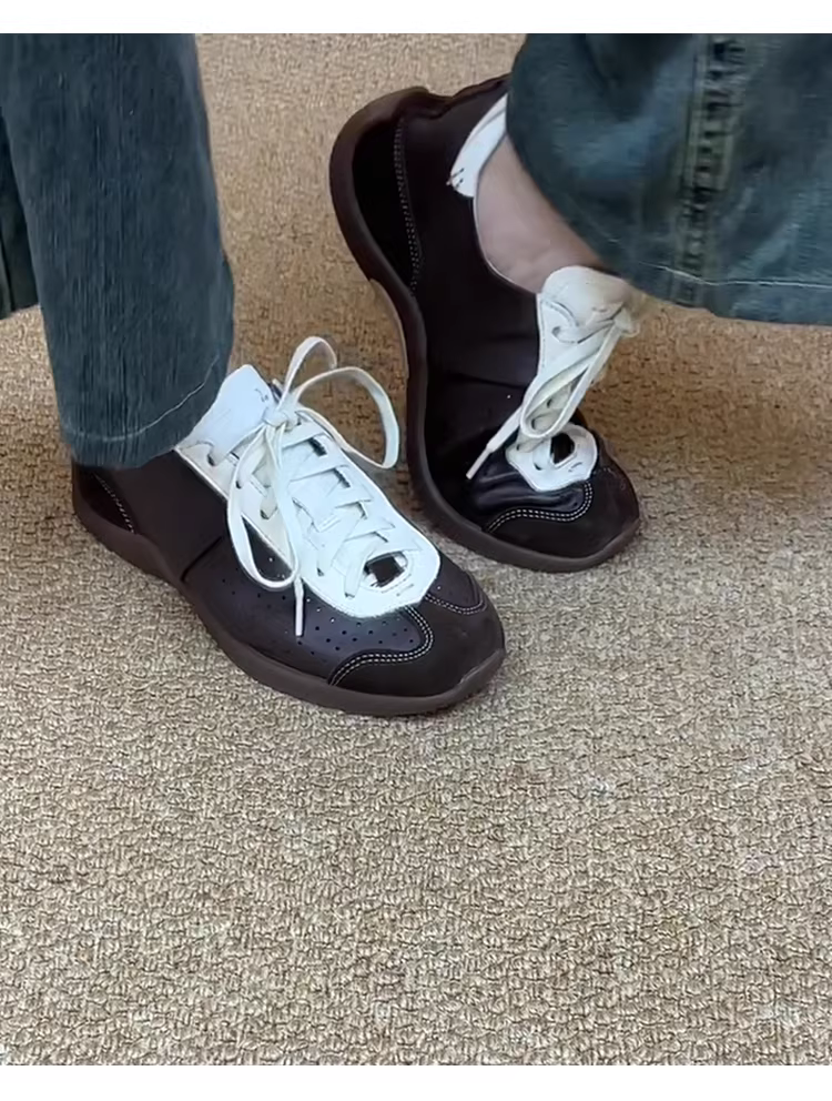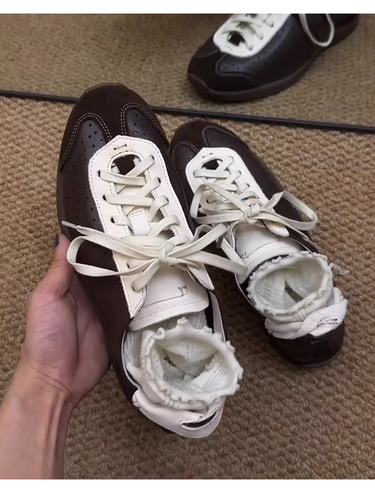 Phiên bản da cừu ~ Giày tập múa ba lê phong cách retro độc đáo dành cho nữ, giày thể thao đa năng có dây buộc, phối màu, kiểu dáng giản dị.