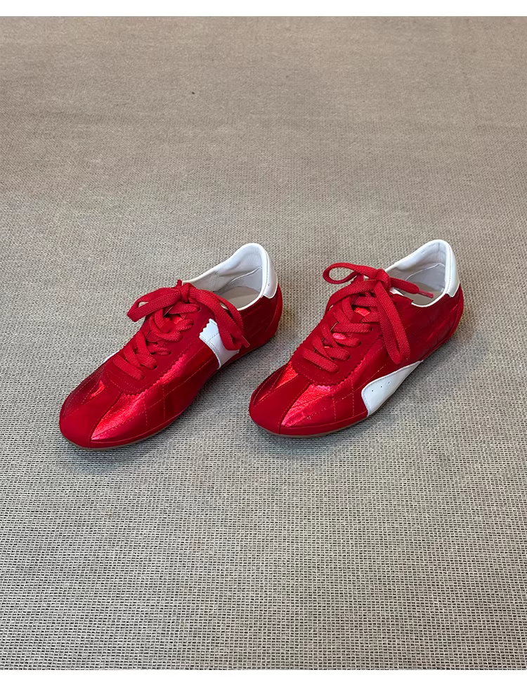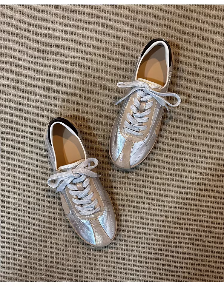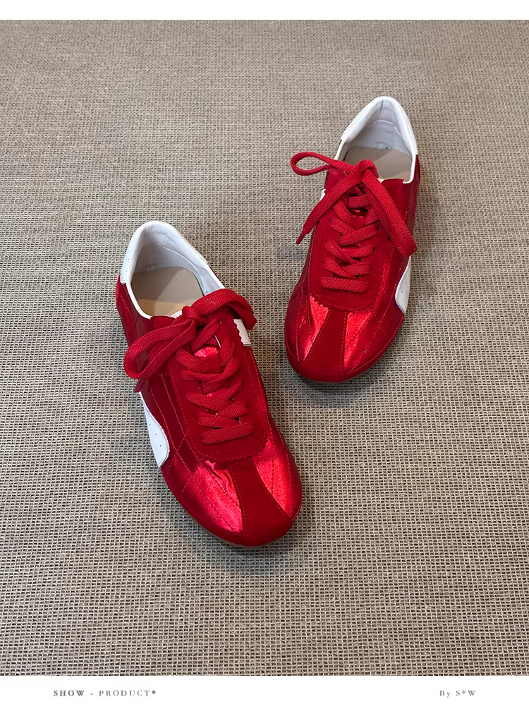 - Phiên bản da cừu ~ Giày thể thao thông thường kiểu Pháp dành cho nữ, giày thể thao thời trang mũi tròn đế bằng có dây buộc đa năng