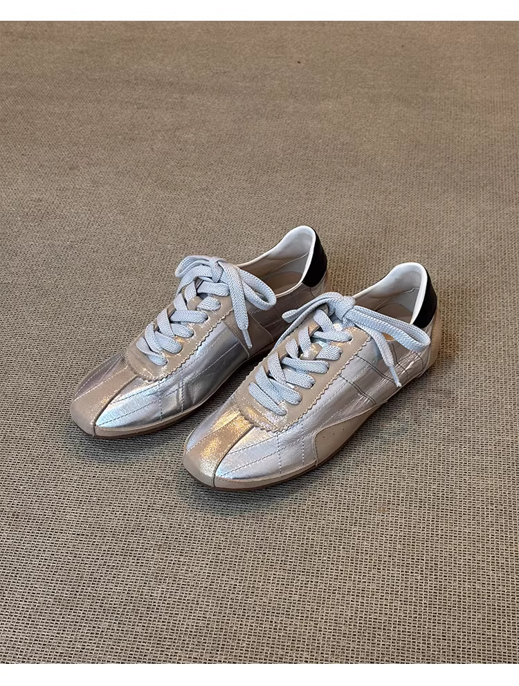 Phiên bản da cừu ~ Giày thể thao thông thường kiểu Pháp dành cho nữ, giày thể thao thời trang mũi tròn đế bằng có dây buộc đa năng